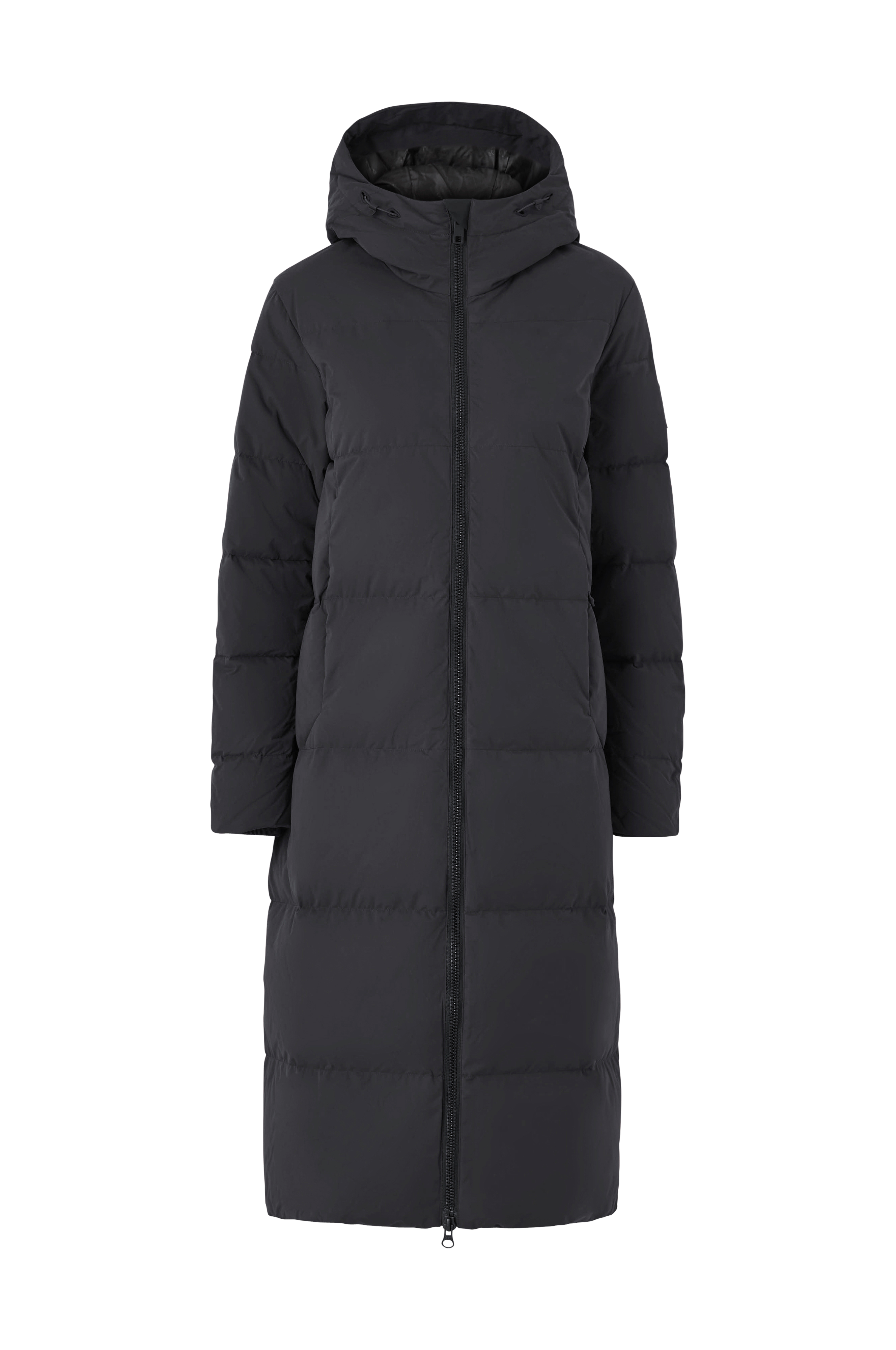 Moderigtig, tidløs og lang dunparka med en cool A-formet silhuet. Shannas hyggelige komfort og varme skabes af de RDS-certificerede dun (80 % dun / 20 % fjer / 500 fill power), som giver en usædvanlig god isoleringsevne. Blød og behagelig justerbar hætte, sorte detaljer og overdimensionerede lynlåse foran, i siderne og på ærmerne. E-dye polyesterforing. PFC-fri vandafvisende finish.