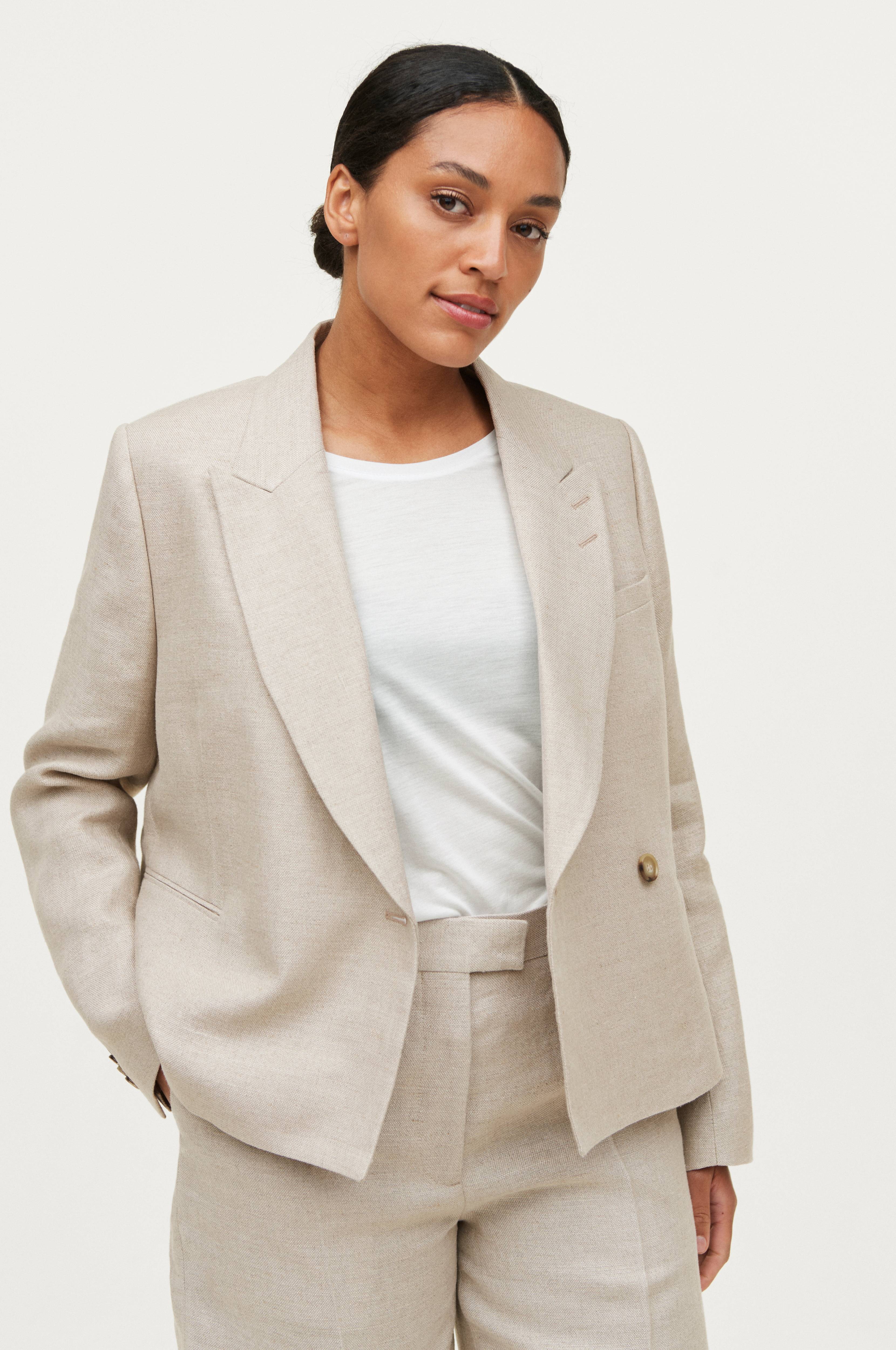 Blazer i hør i en noget kortere model med en knap i siden foran samt to lommer. I vævet hørkvalitet med skøn struktur. Foret.