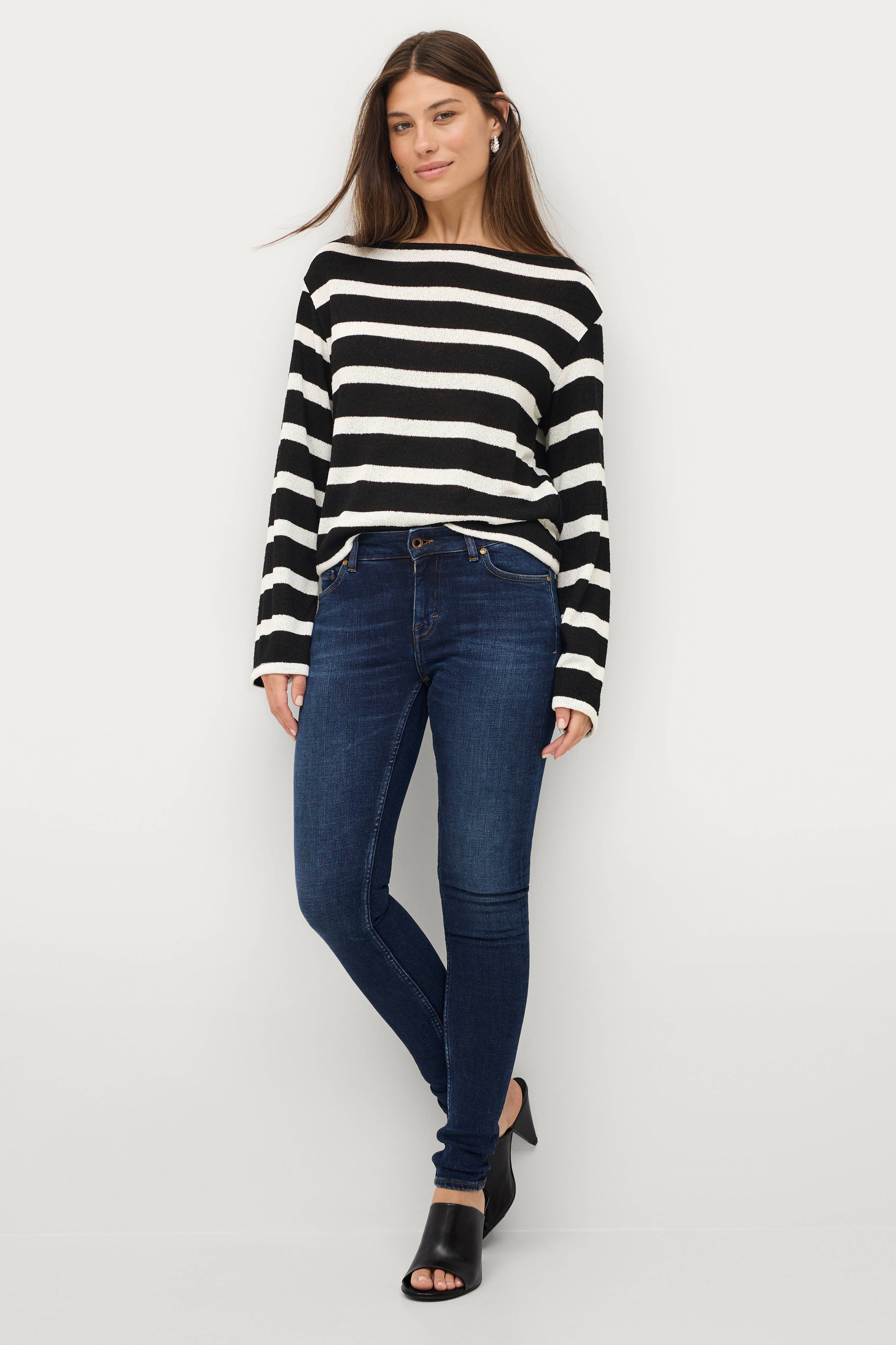 Modellen er 175 cm høj og bærer en str. W27/L32