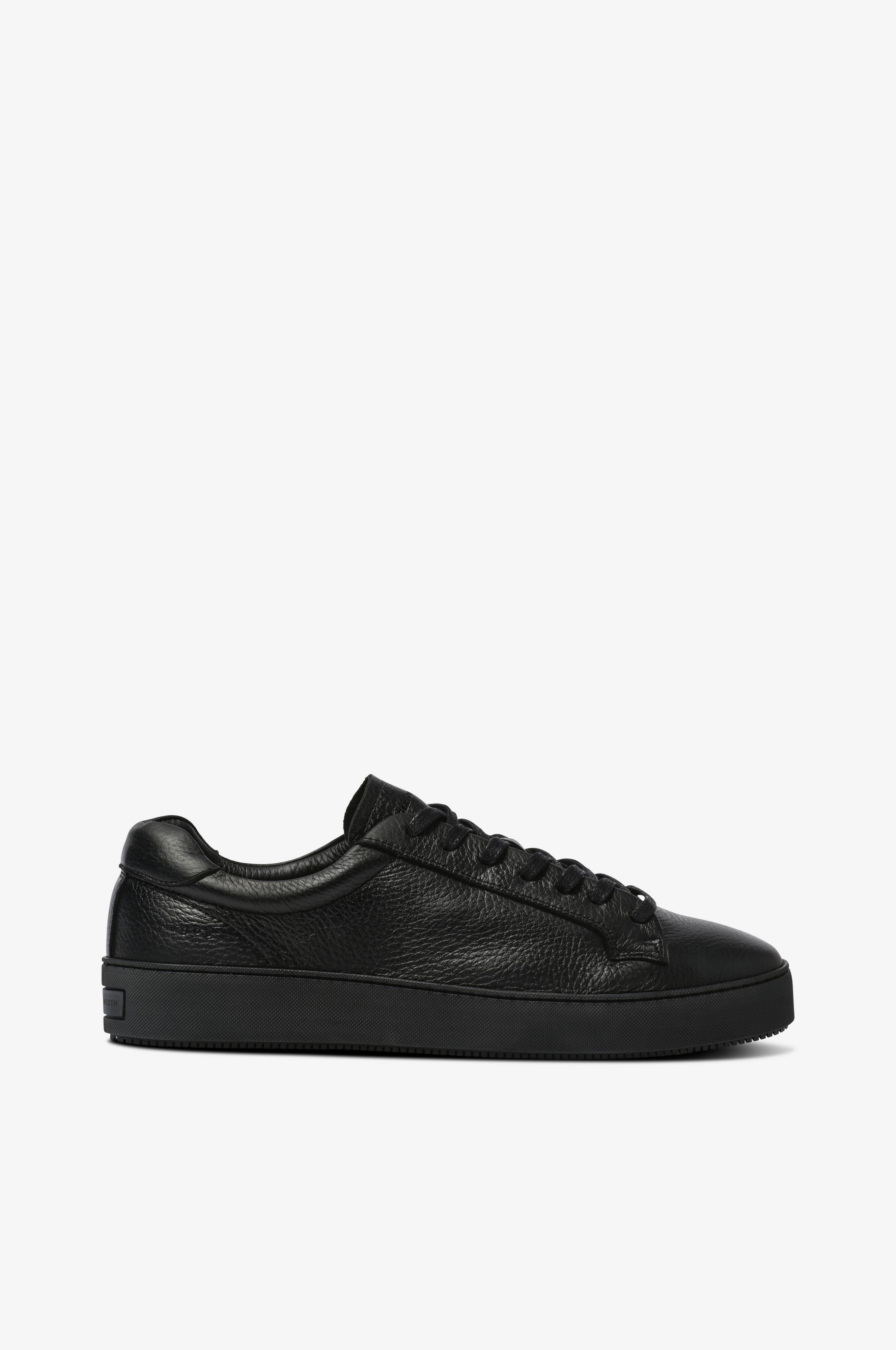 Sneakers i skind med flad snøring. Vatteret hæl og lidt højere sål. Indersål af skind.