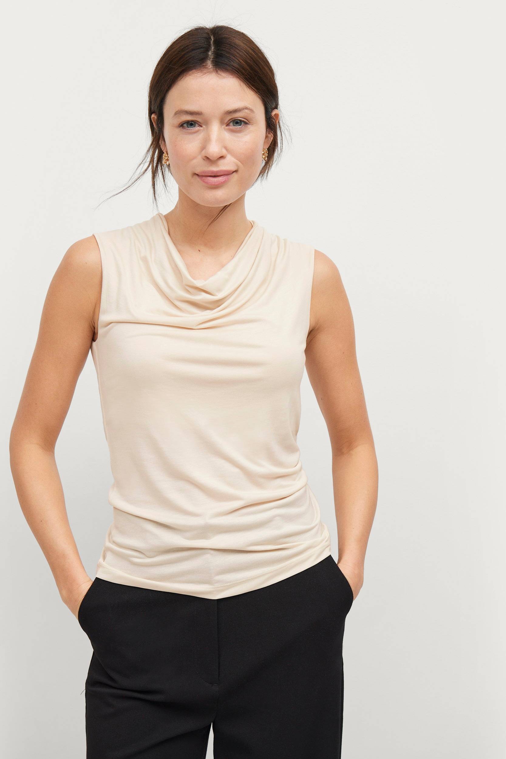 • Ærmeløs top• Elastisk jersey• Smal pasform• Rund, draperet halsudskæring