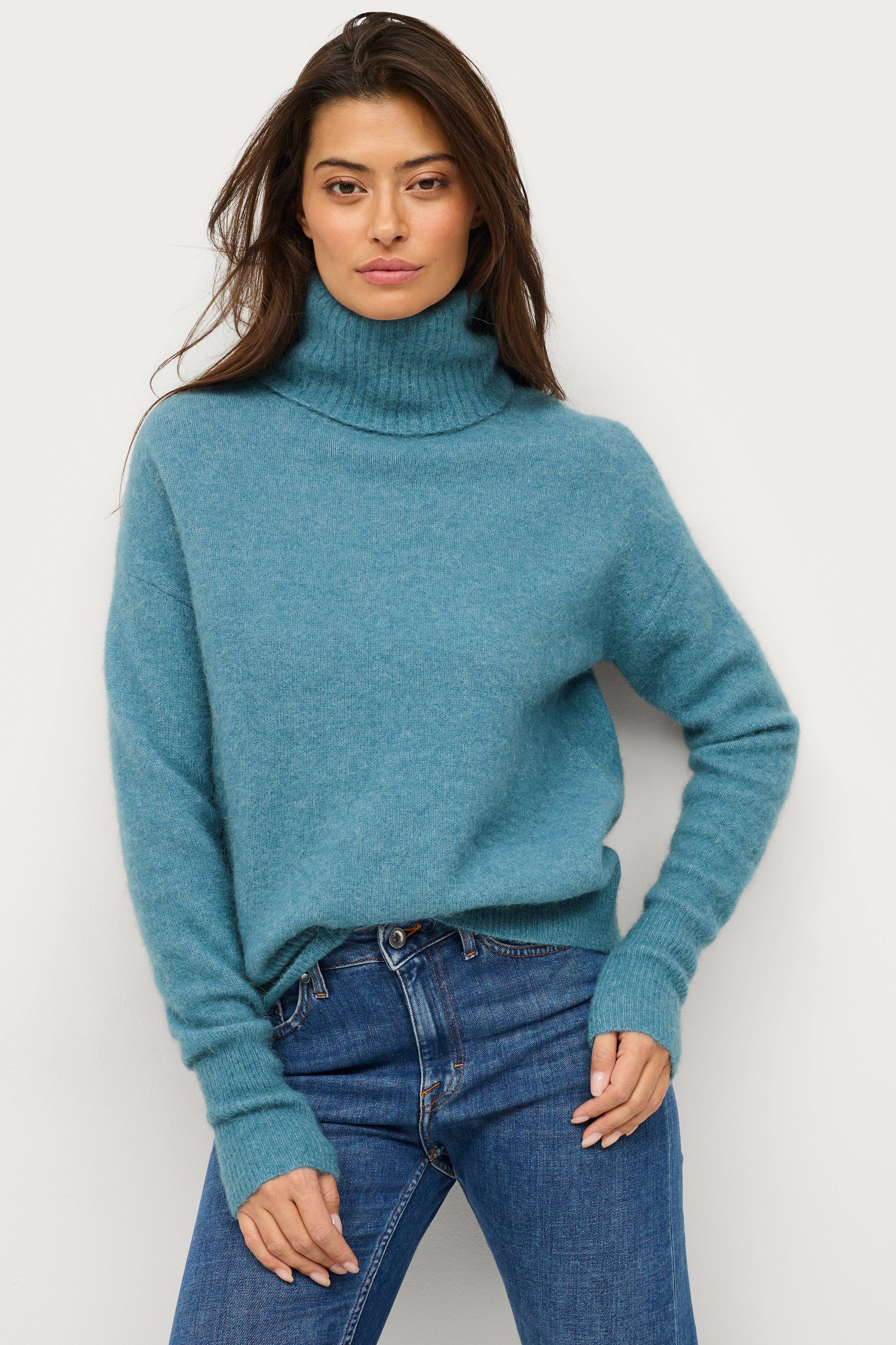 • Strikket trøje i blød kvalitet med alpaka- og merinould• Ribstrikket, dobbelt turtleneck• Uformel pasform• Nedsænkede skuldre• Ribstrik ved manchetterne og ved nederste kant