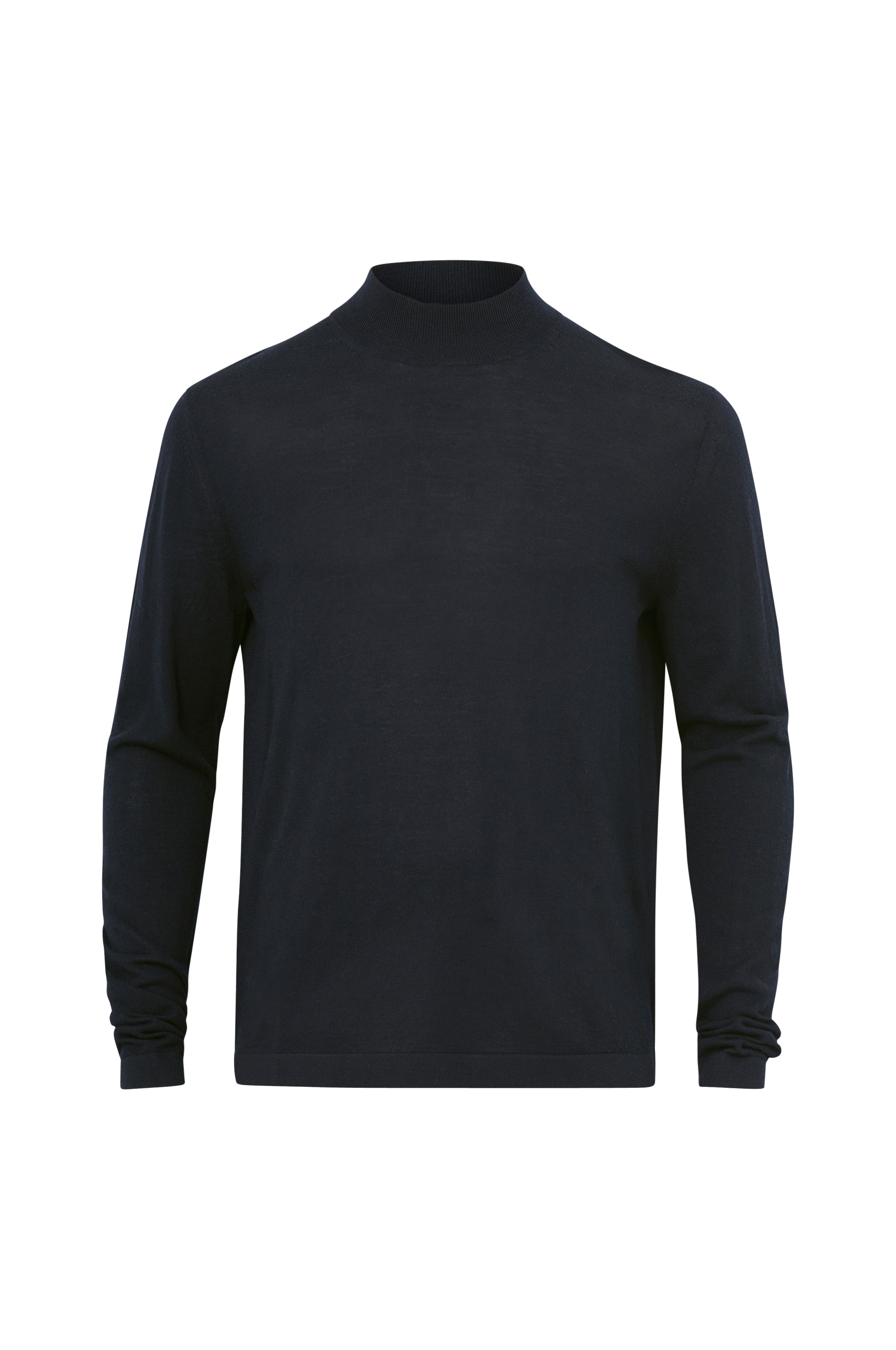 • Fintstrikket trøje i merinould• Høj, ribbet krave• Elastiske kanter ved manchetterne og nederst