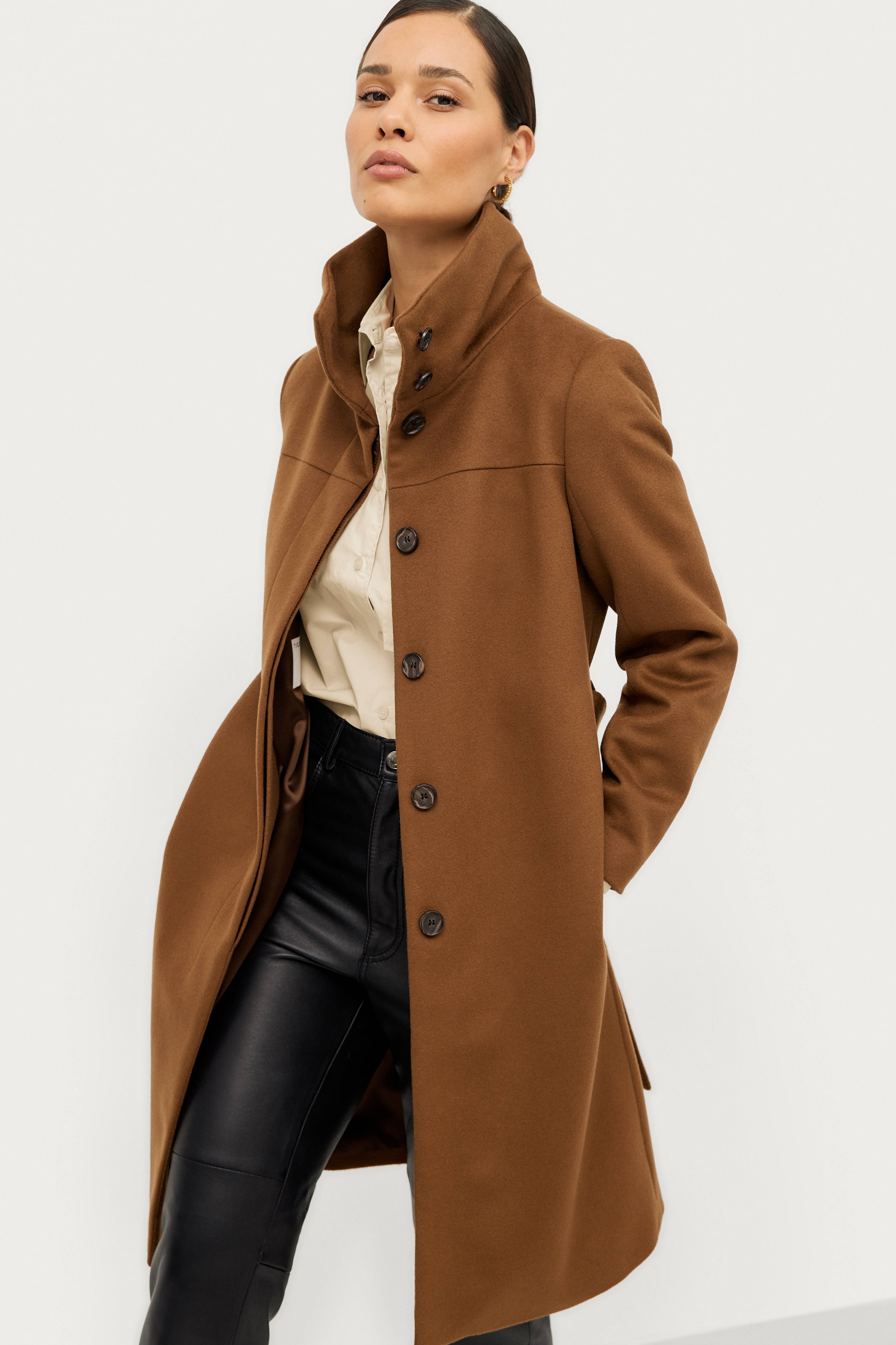 • Stilren frakke i uldmiks• Skjulte knapper foran• Ståkrave• Bindebælte ved taljen• Sidelommer• Længde: 100 cm i størrelse 36
