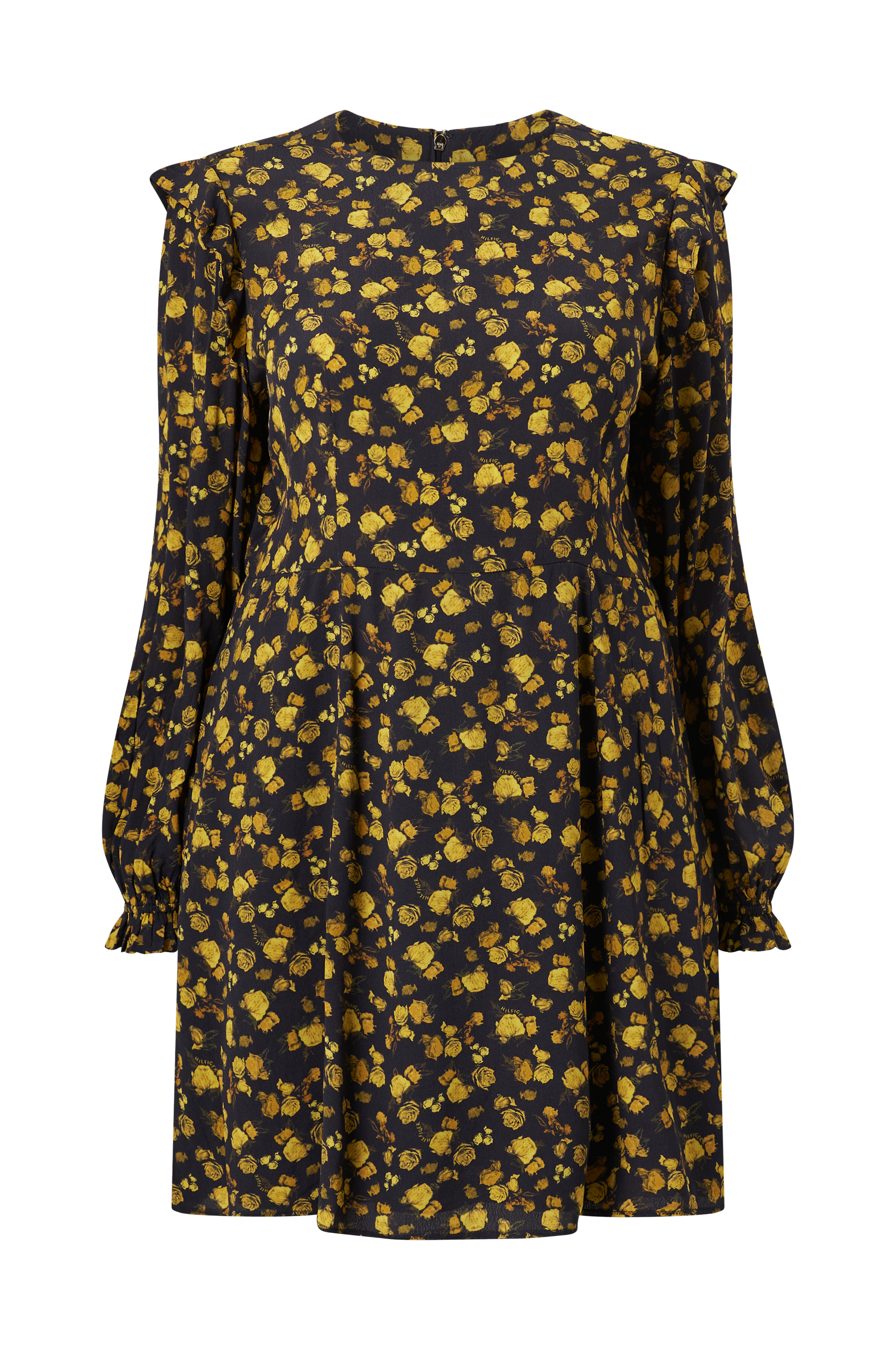 • Kjole i viskose• Crepe kvalitet• Rund halsudskæring med lynlås bagpå• Volanter omkring skuldrene• Elastik ved manchetterne• Vævet for• Store størrelser• Længde: 95 cm i størrelse 46