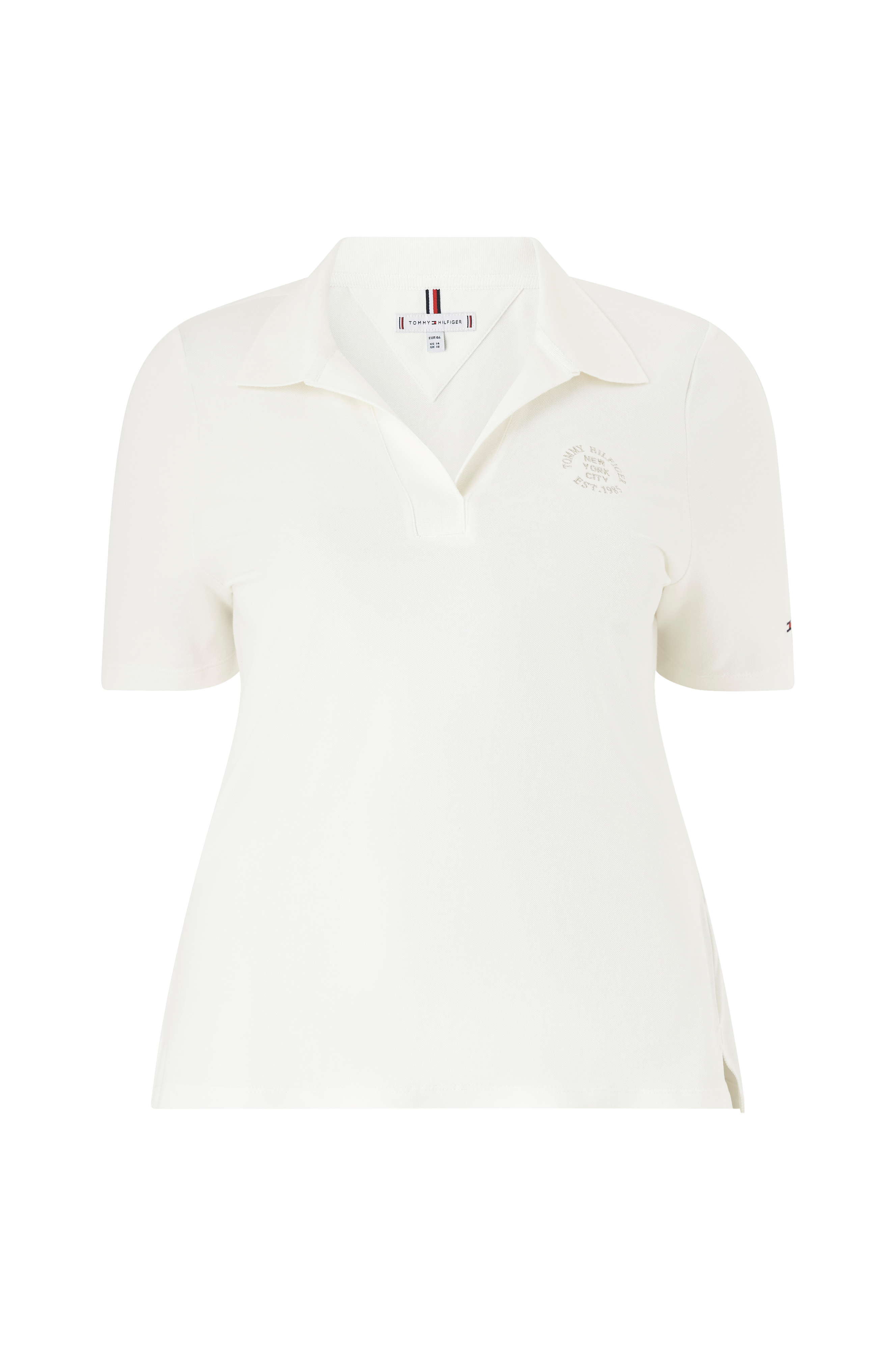 • Ribbet krave• V-hals• Broderet logo på brystet• Slids nede i siderne
