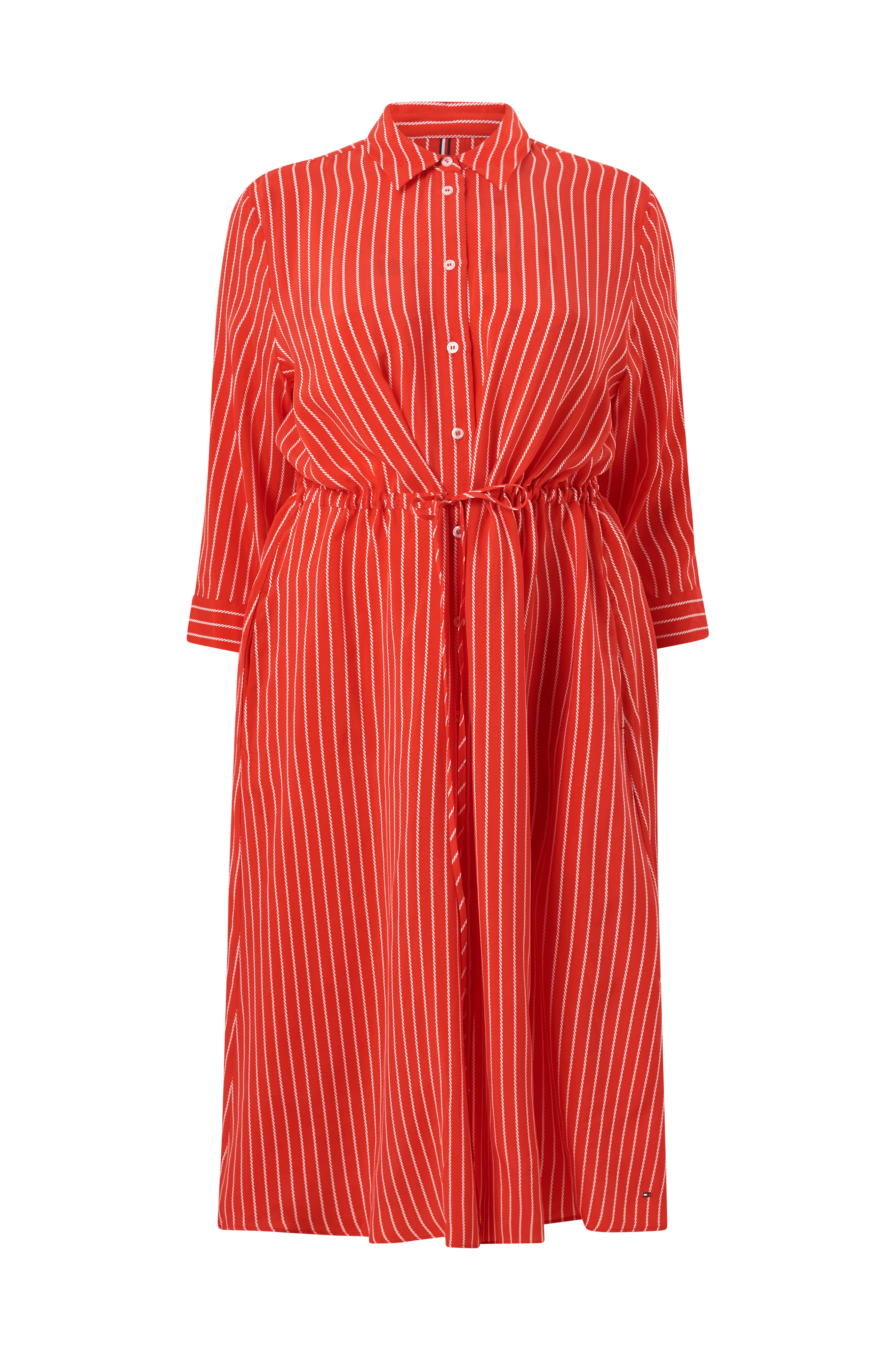 • Kjole med klassisk skjortekrave• Knapper hele vejen frem• Træksnørre ved taljen• 3/4 lange ærmer• Manchet med en knap• Store størrelser• Længde: 124 cm i størrelse 46