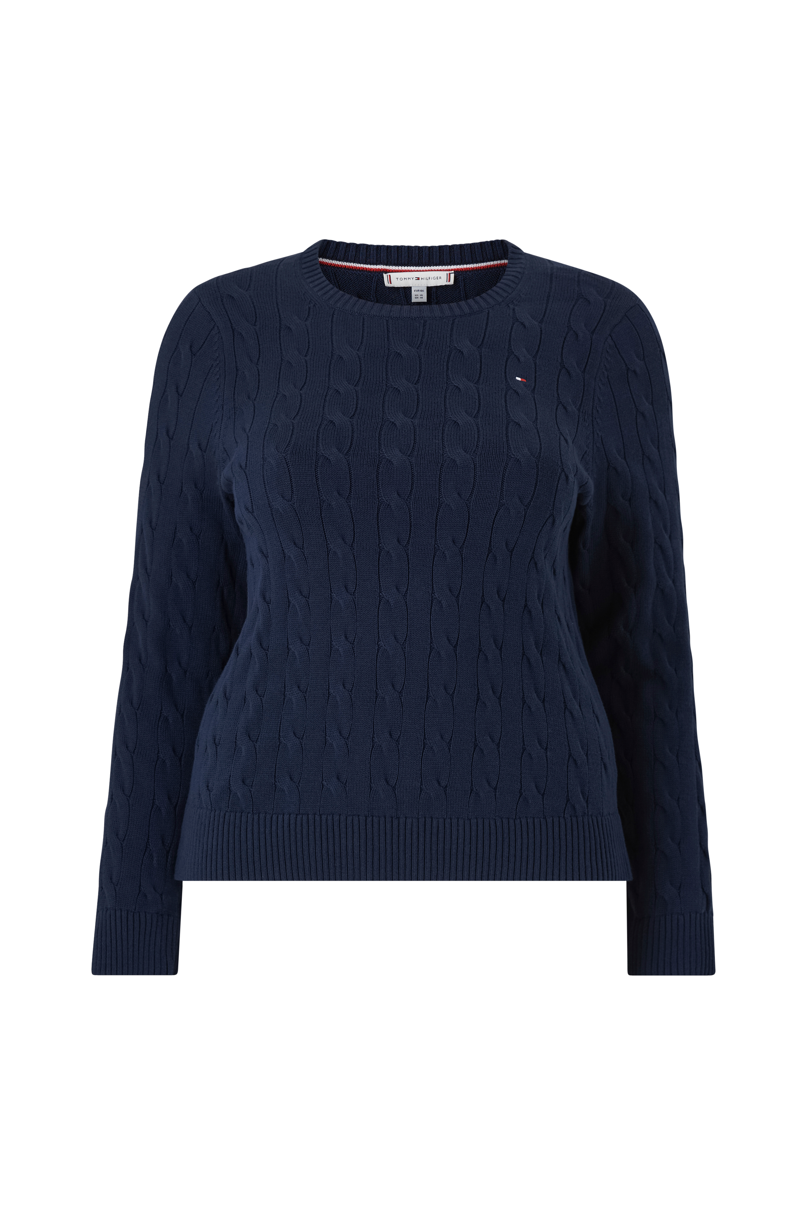 • Kabelstrikket trøje i bomuld• Rund halsudskæring• Ribstrik ved manchetterne og nederst• Store størrelser