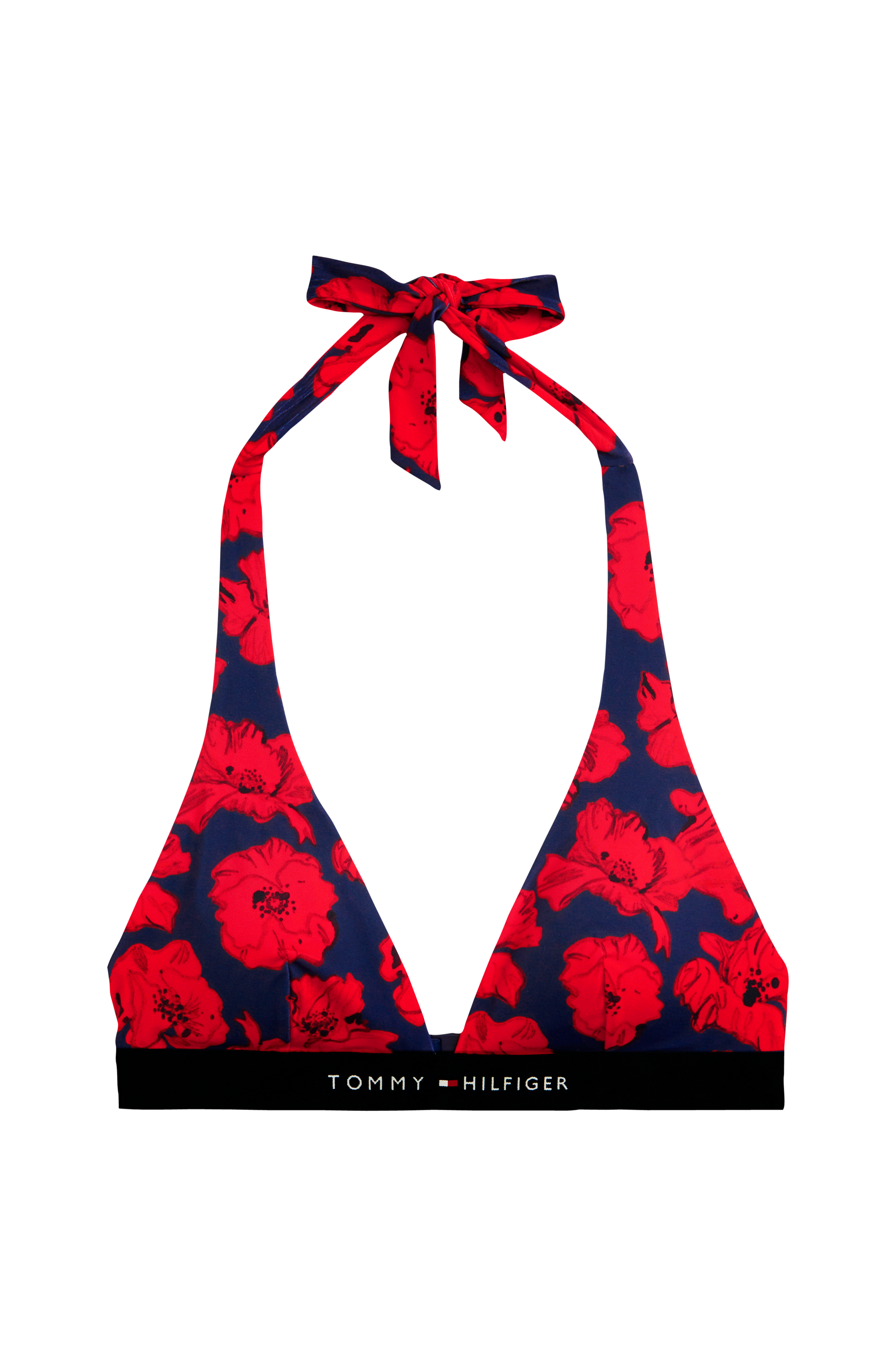 • Halterneckdesign med bindebånd i nakken