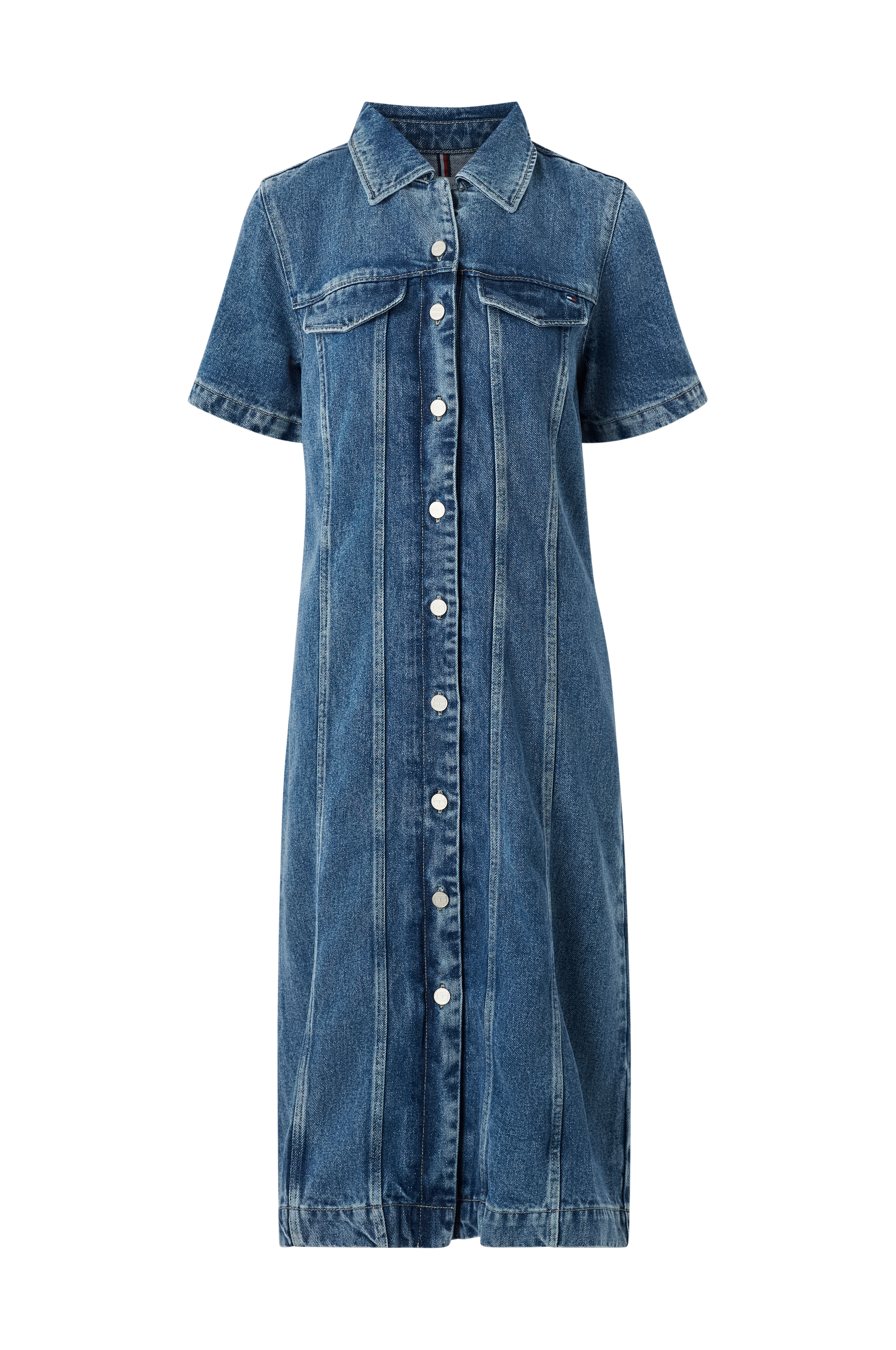 • Kortærmet skjortekjole i denim med figursyet pasform