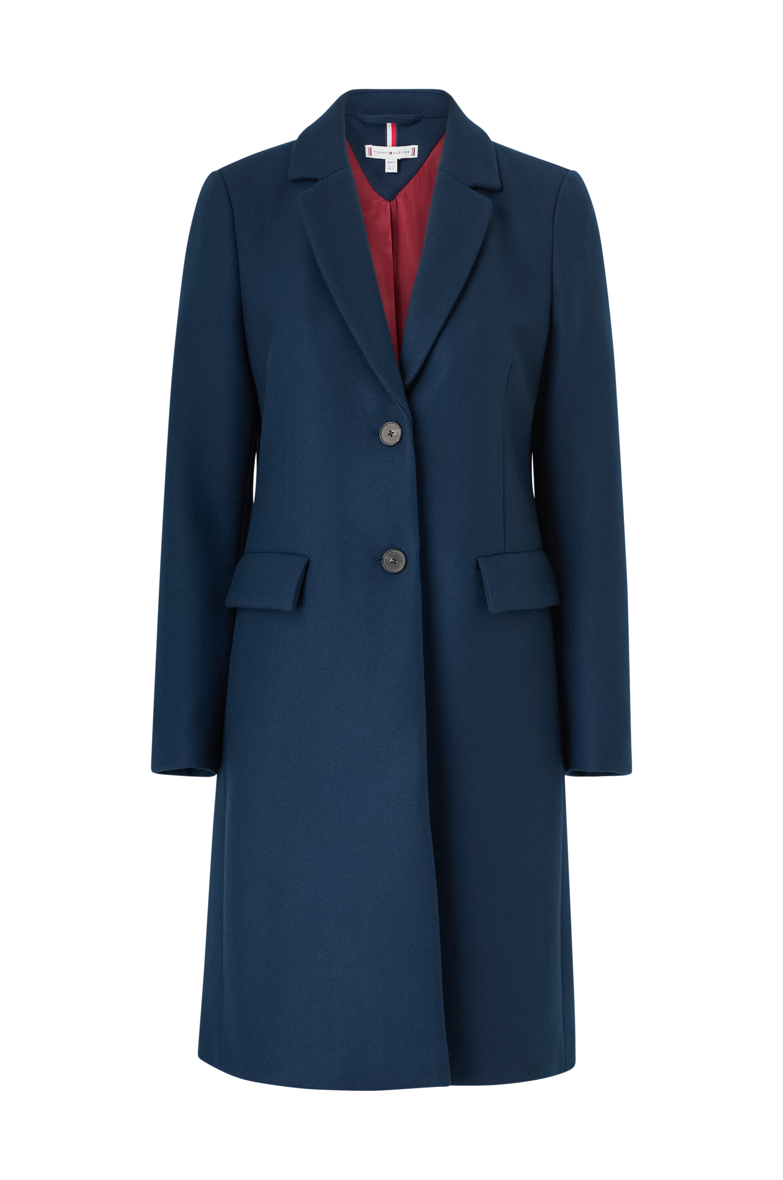 • Enkeltradet frakke i uldmiks• Skinnende, vævet inderfor• Forlommer med låg• Slids nede bagved• Længde: 101 cm i størrelse 36