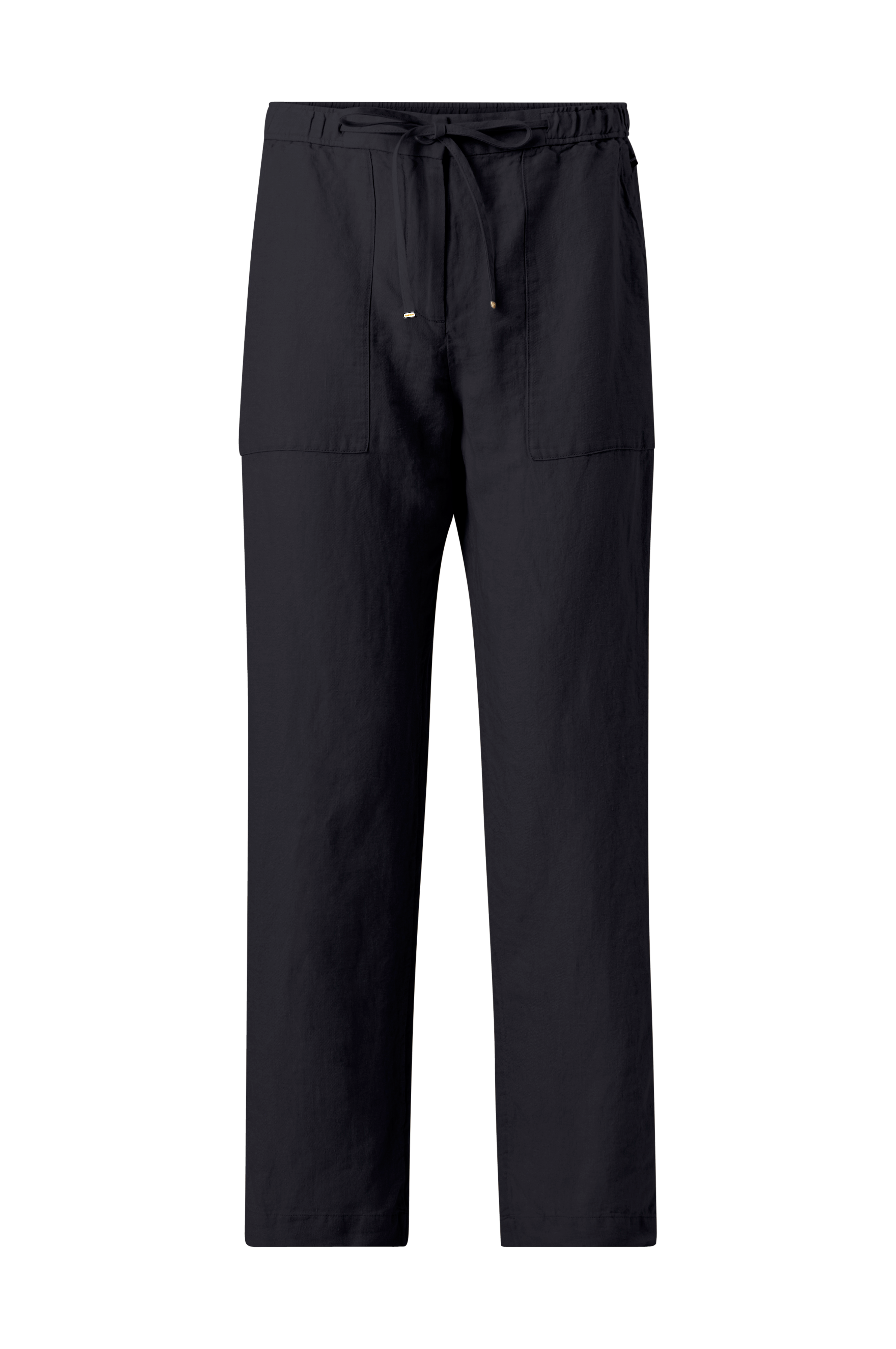 • Bukser i hør• Elastisk talje med træksnørre• Gylp med knap og lynlås• Lommer i siderne• To baglommer