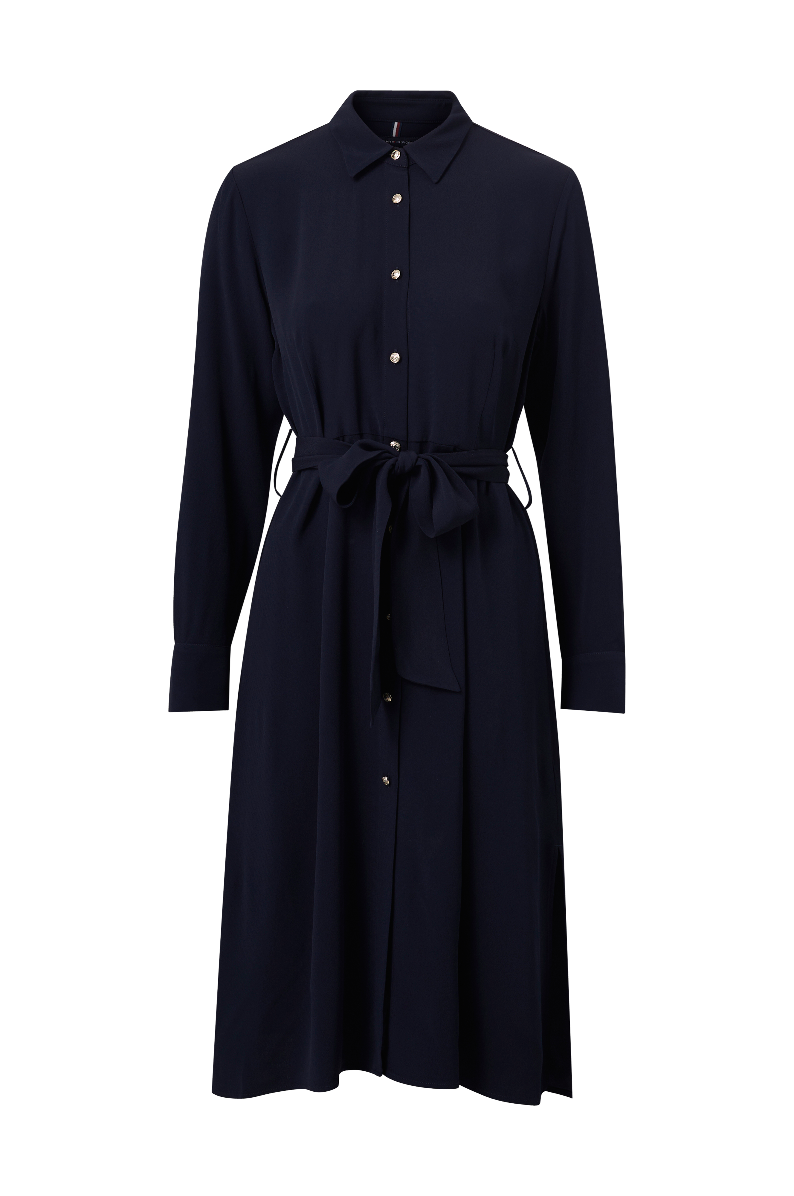 • Crepe kvalitet• Gennemknappet model med metalknapper• 3/4 lange ærmer• Slids med knap ved manchetterne• Aftageligt bæltespænde ved taljen• Længde: 113 cm i størrelse 36