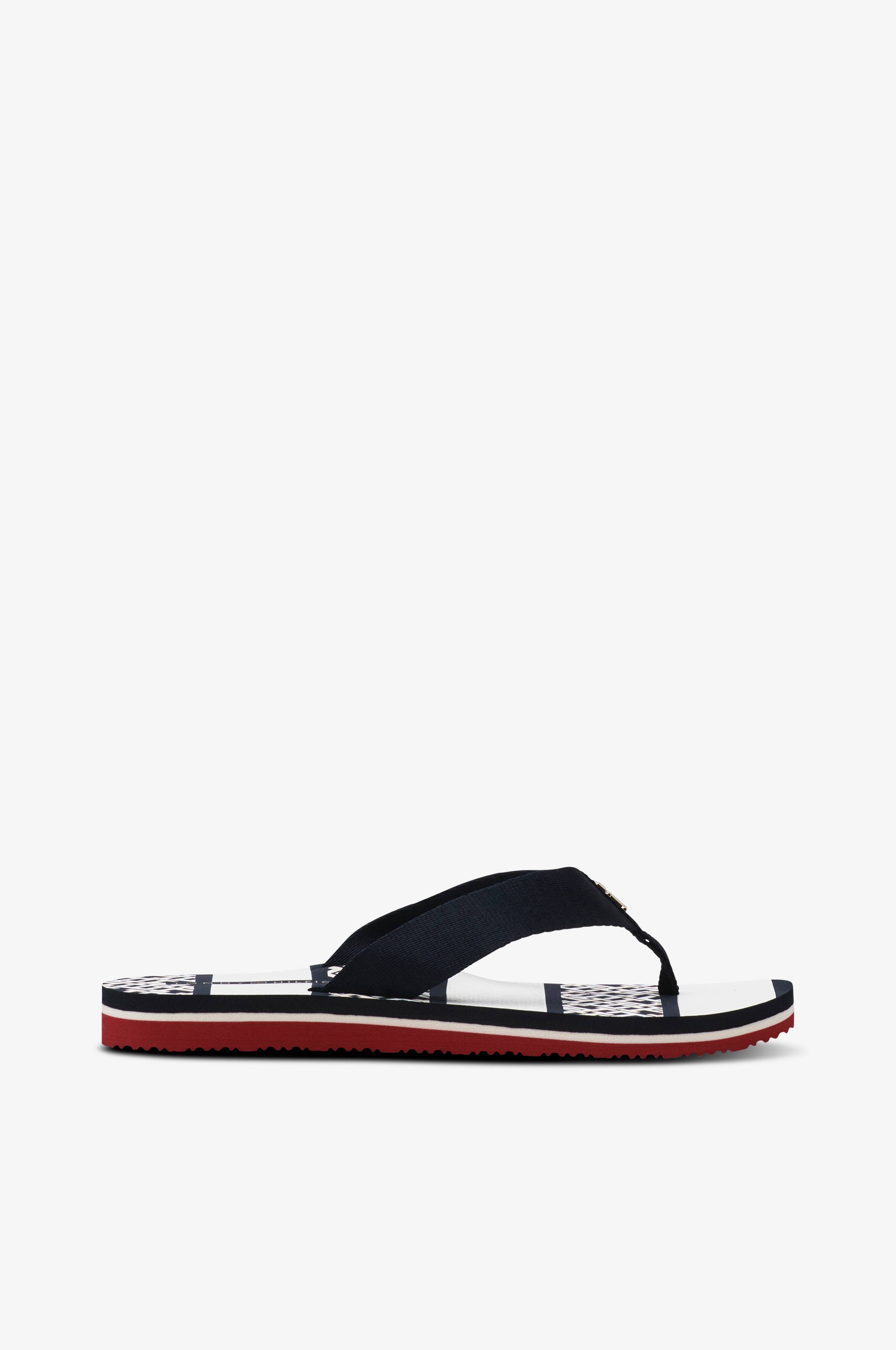 Klipklapper med tårem i tekstil. Blød fodseng og ydersål i EVA med riflet mønster.