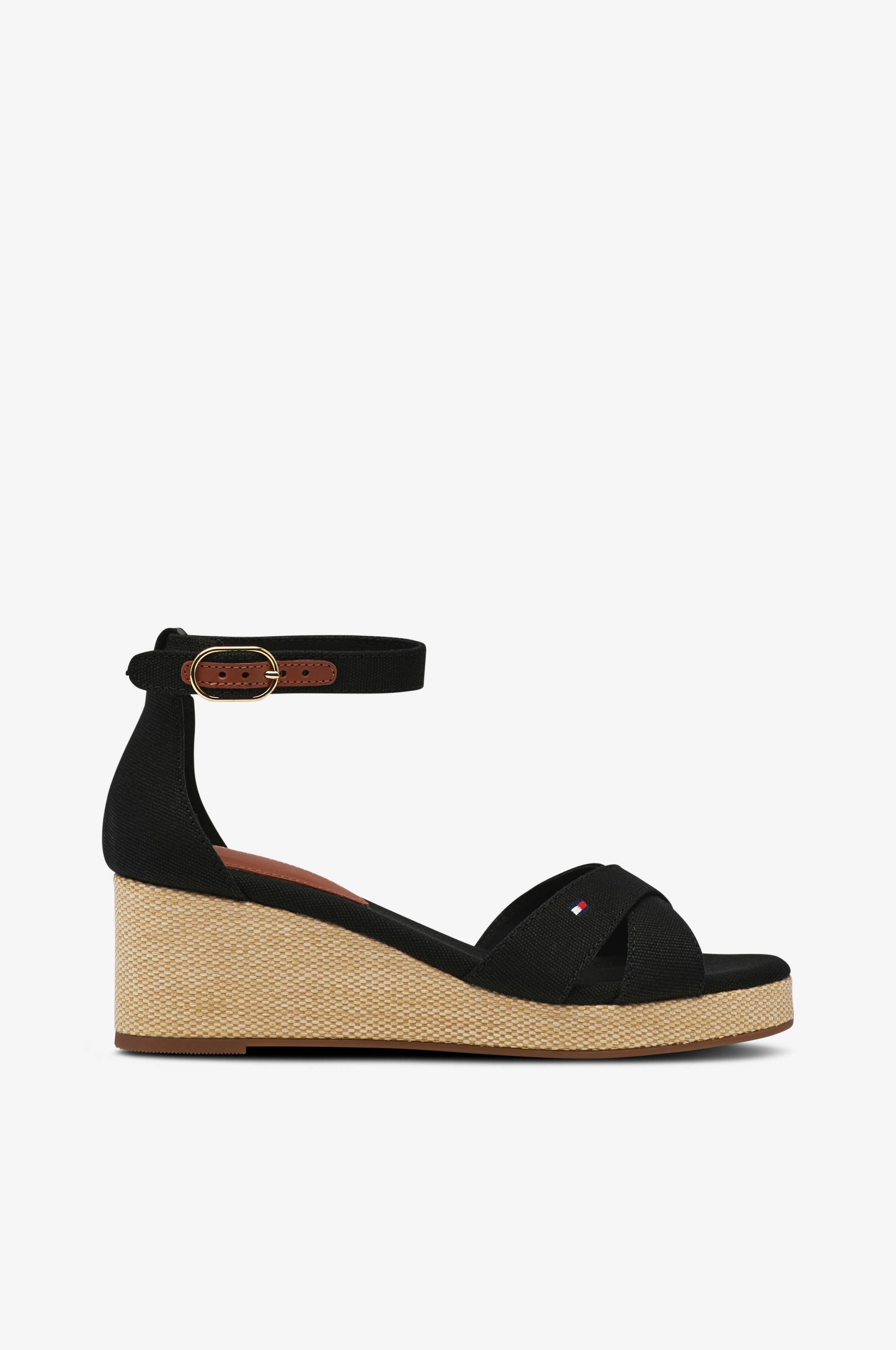 • Model i tekstil med wedgehæl• Afrundet snude• Justérbar ankelstrop med elastisk indlæg• Stofbeklædt sål og hæl• Sålhøjde: 2 cm• Hælhøjde: 6 cm