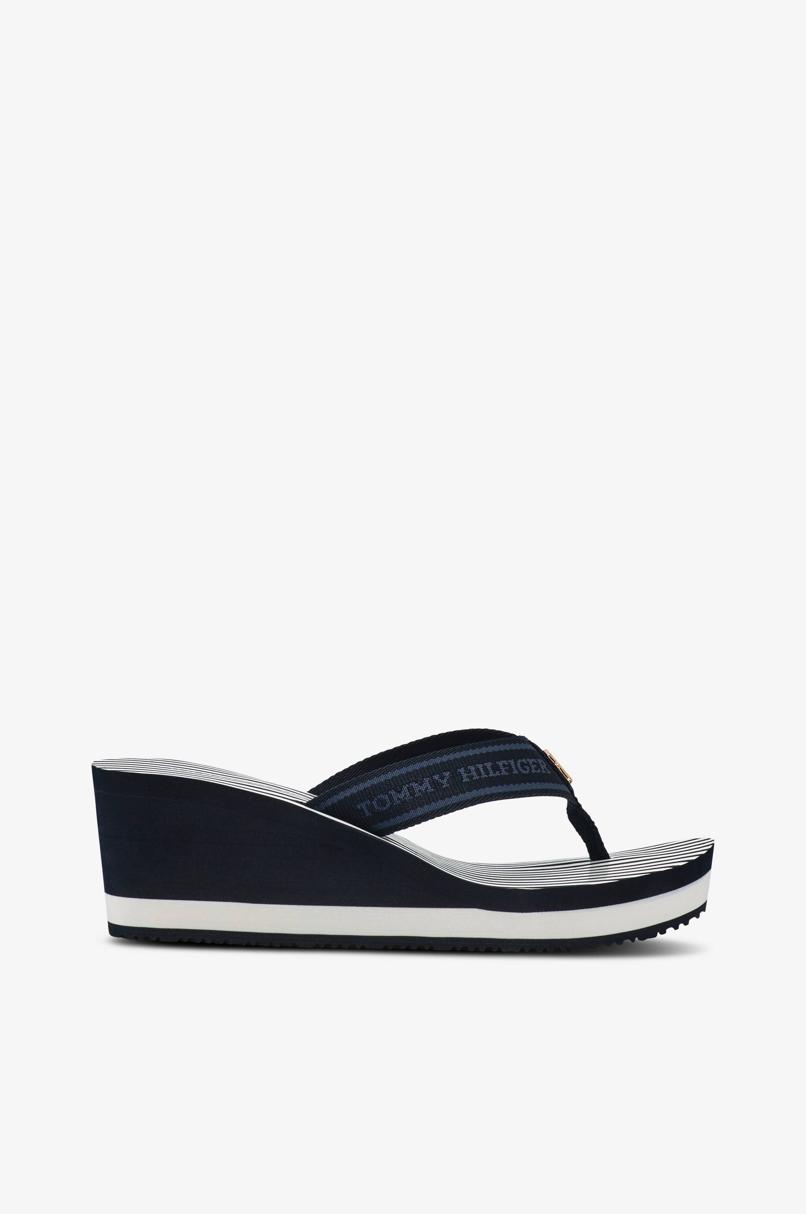 • Sandal med hæl med wedgehæl• Tårem i tekstil• Bekvem, stribet fodseng• Ydersål i gummi• Hælhøjde: 6 cm