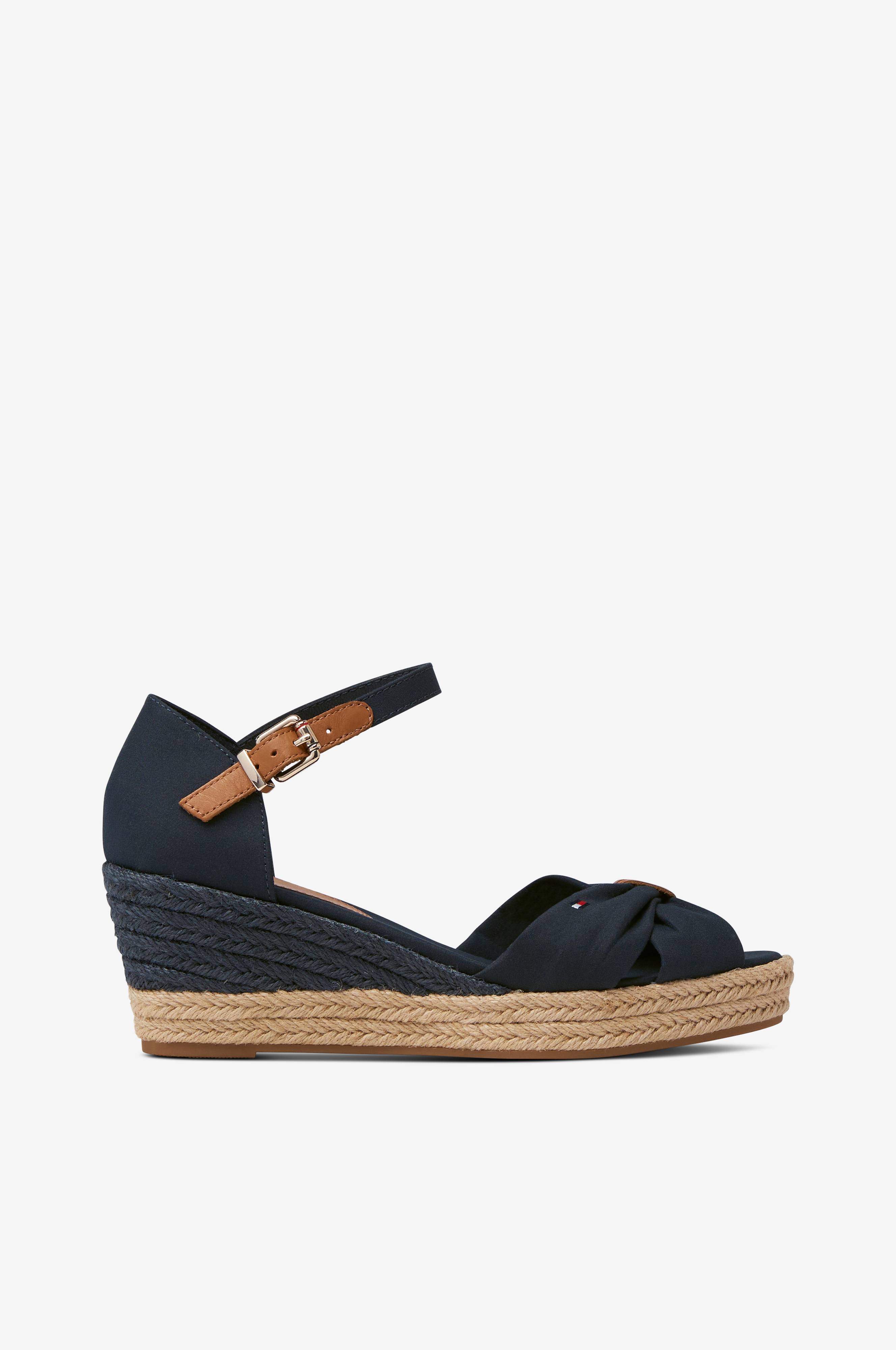 Model i kanvas med skinddetalje foran. Smal vristrem med skind på indersiden og ved spændet som sidder i elastisk indsats. Rebbeklædt plateausål og kilehæl.Hælhøjde ca. 6,5 cm. Sålhøjde ca. 2,5 cm.