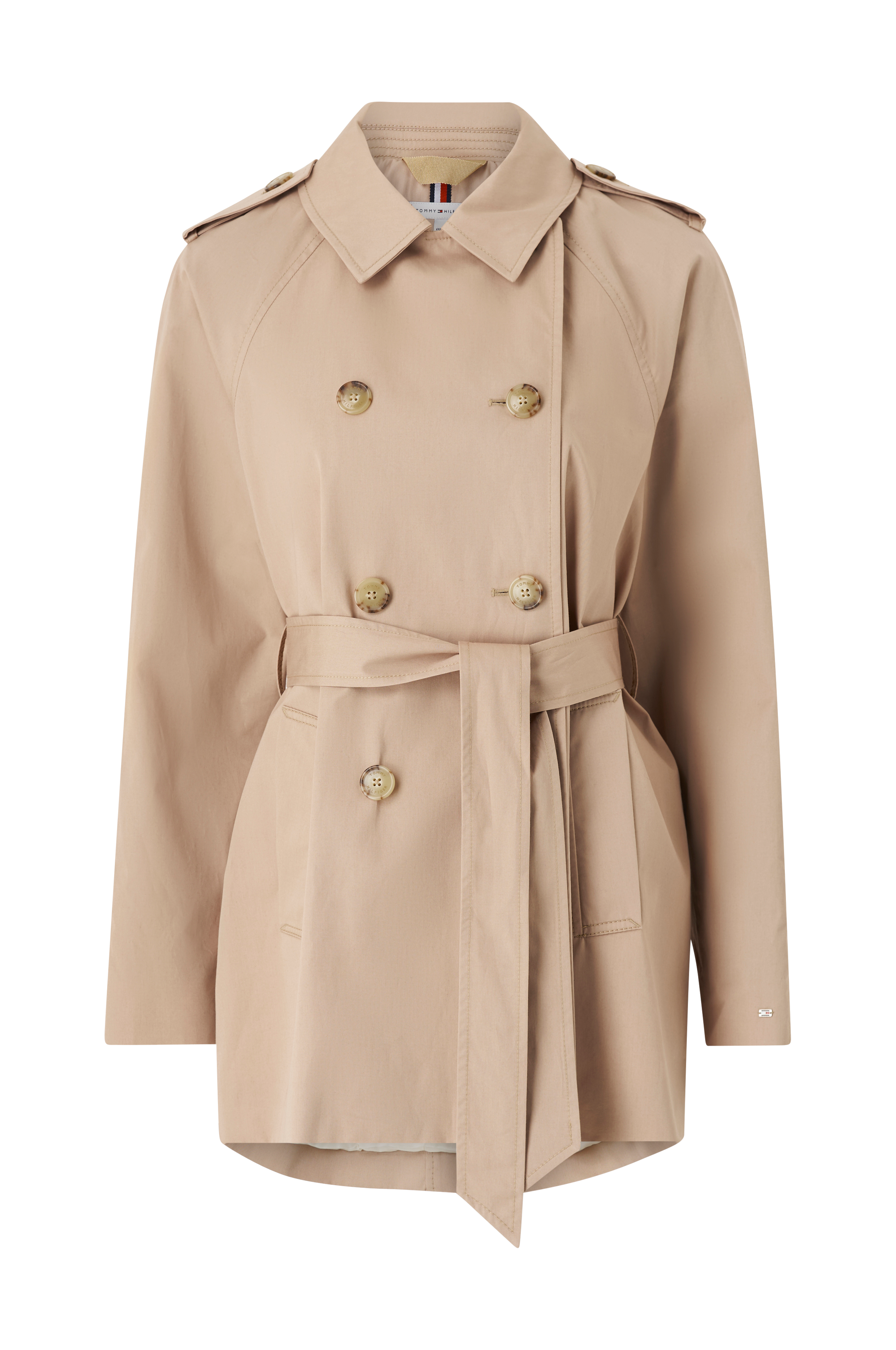 • Kort trenchcoat• Skulderstropper• Dobbeltbrystet model• Aftageligt bindebælte ved taljen• Sidelommer• Knapdetaljer ved manchetterne• Løstsiddende linning bagpå• Længde: 81 cm i størrelse 36