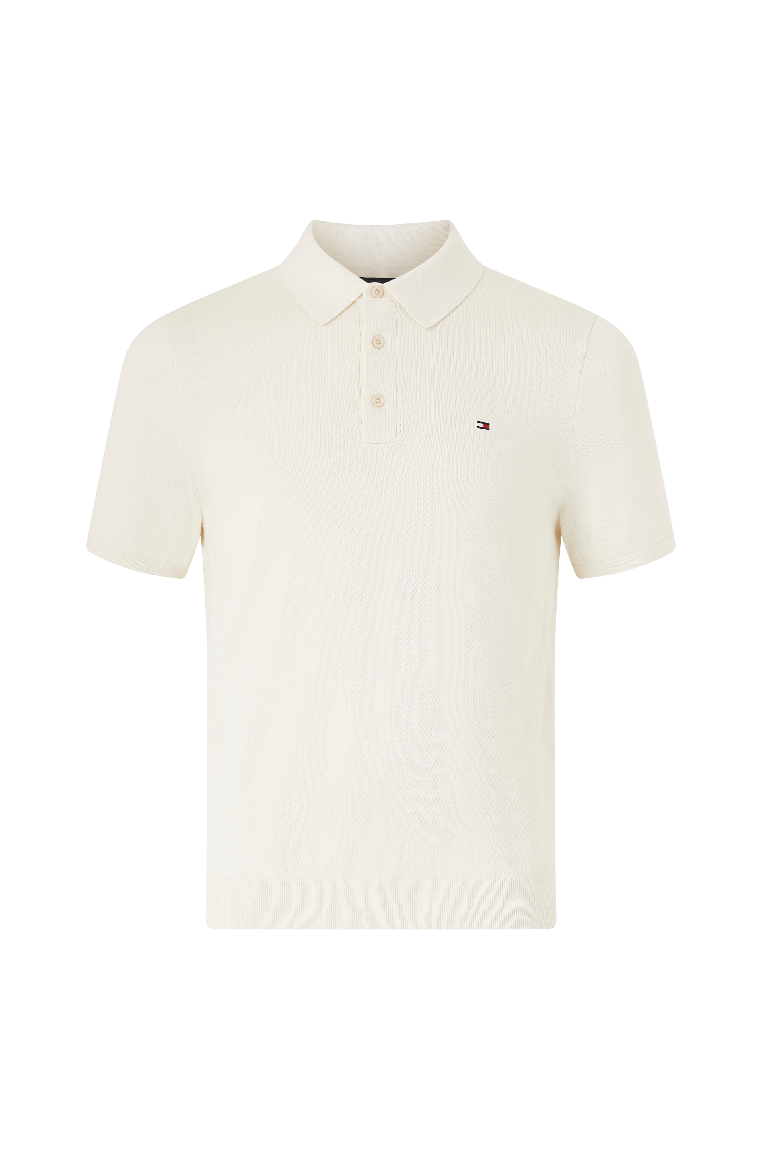 • Fintstrikket, kortærmet trøje• Ribbet krave• Tre knapper• Ribstrik nederst og ved ærmeafslutningerne