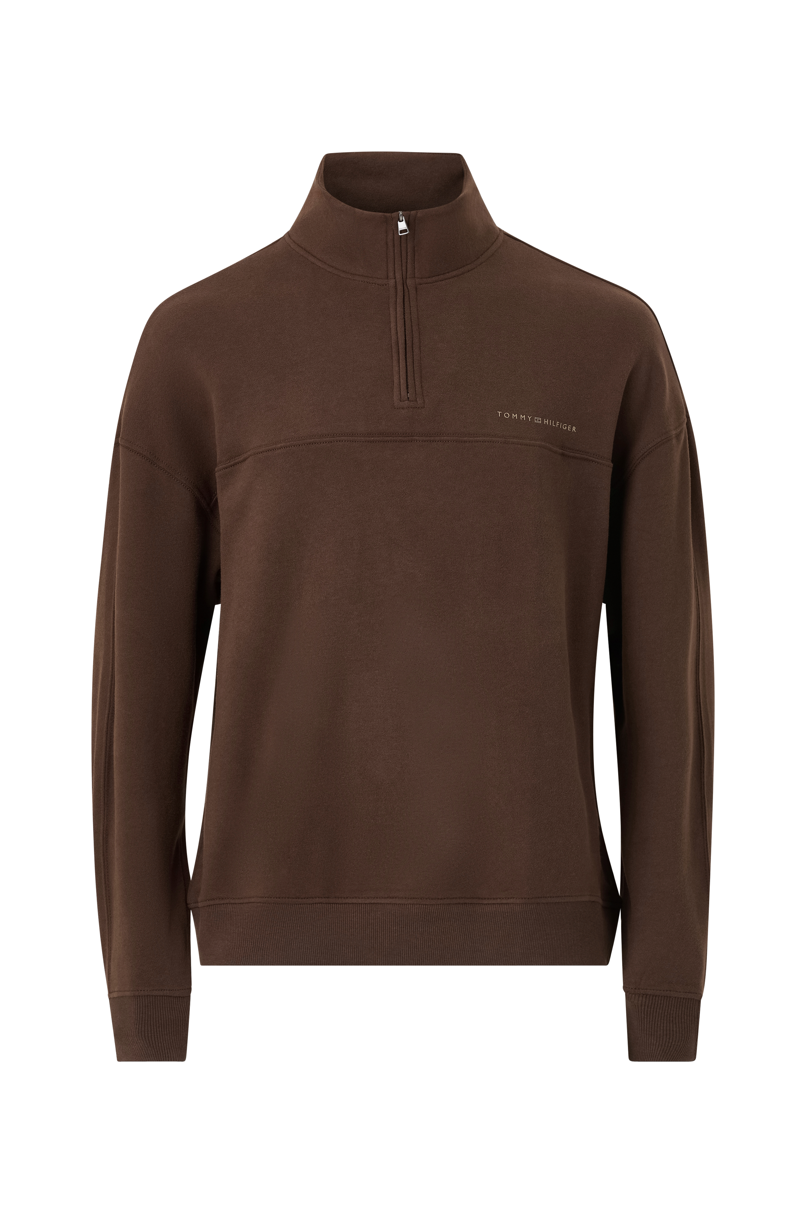 • Blød trøje i bomuld• Opretstående krave• Kort lynlås• Ribmanchetter ved manchetterne og nederst• Nedsænkede skuldre