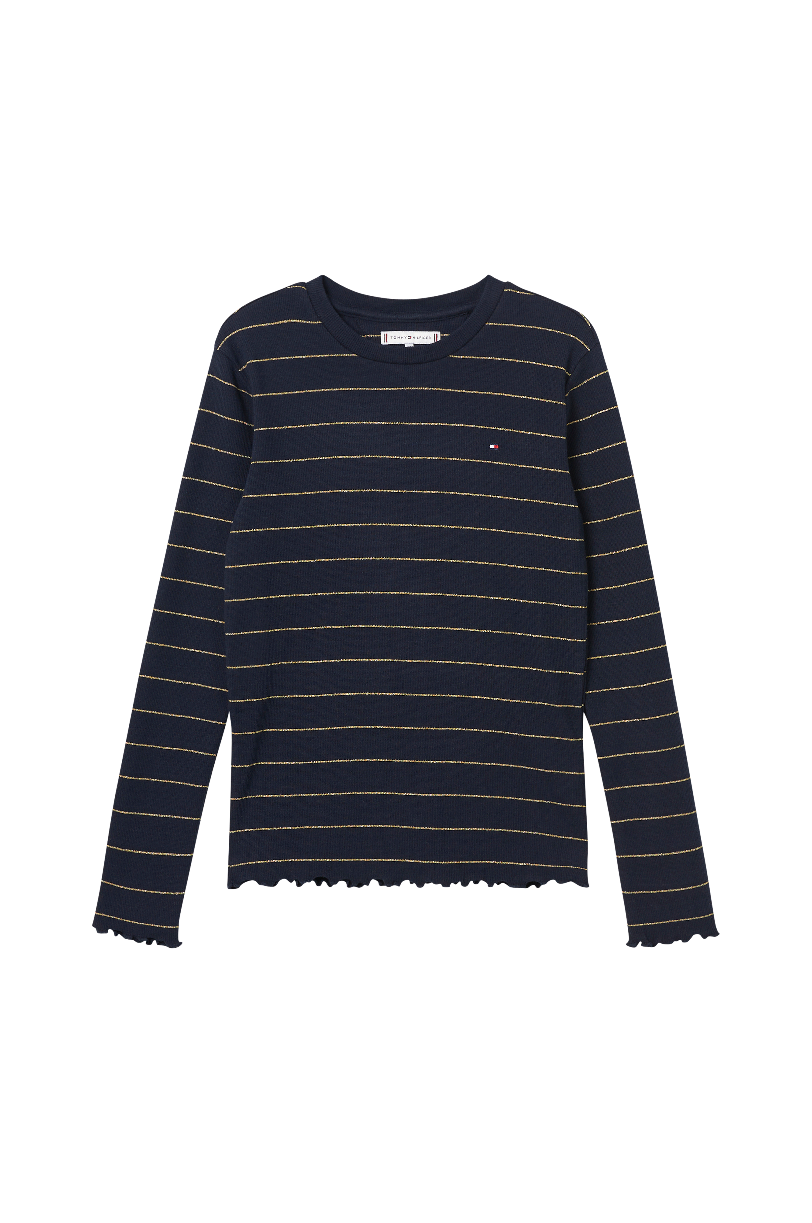 • Fintstrikket, ribbet trøje med glitrende striber