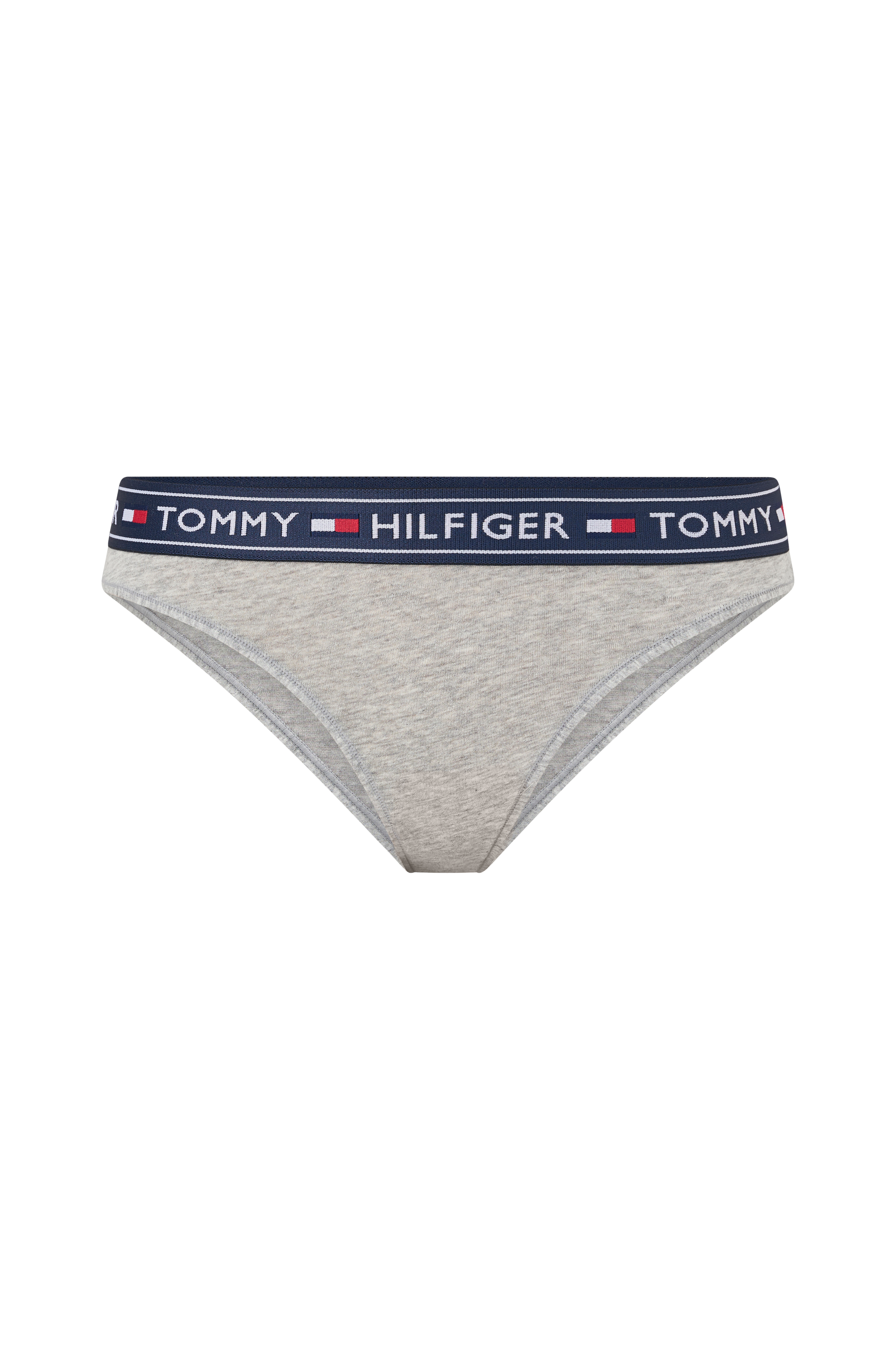 Trusse Brazilian fra Tommy Hilfiger i blød bomuldsjersey med høj benudskæring og bred logoelastik i taljen. Bomuldsforet skridt.