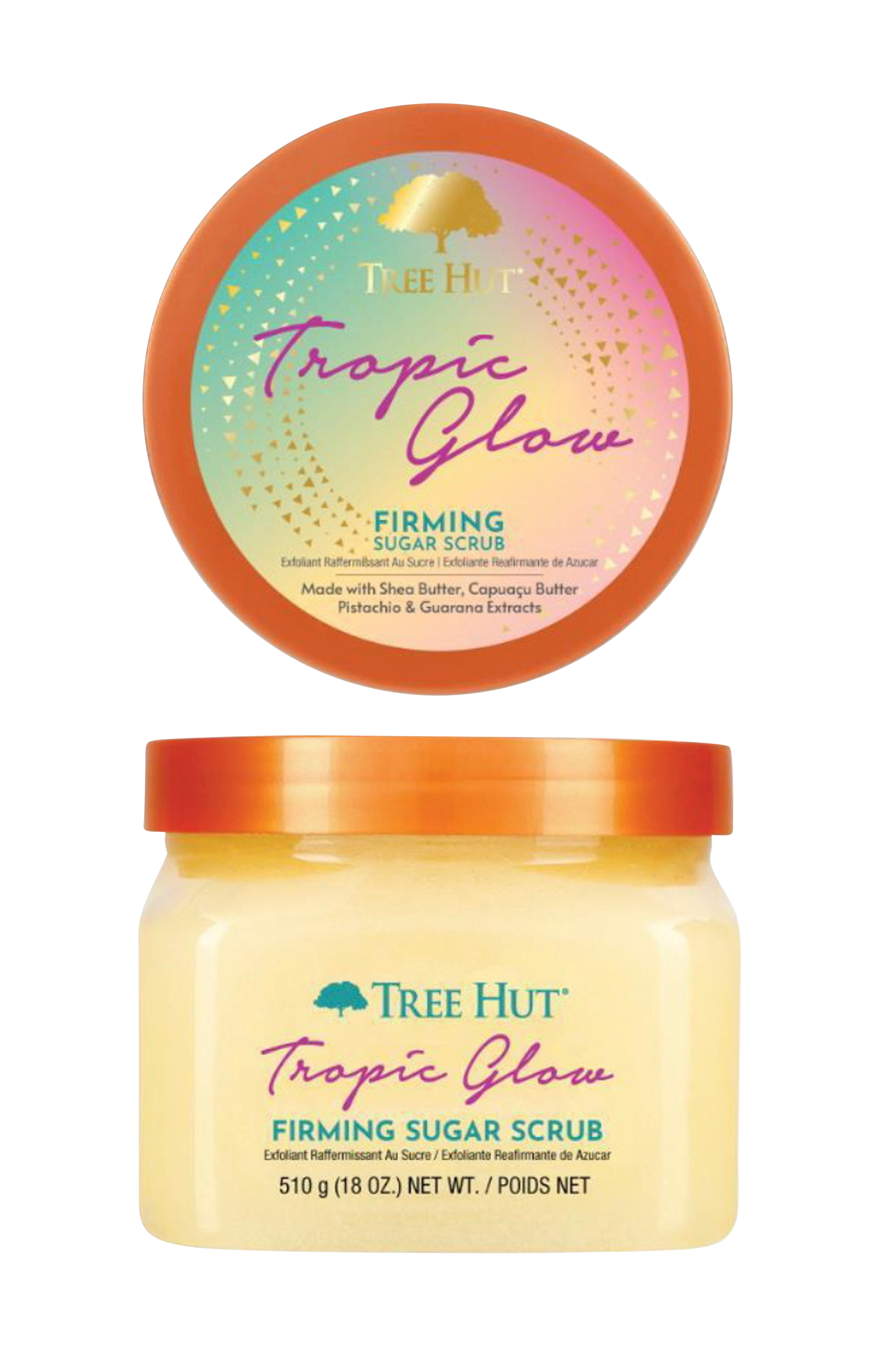 Firming Shea Sugar Scrub Tropic Glow er en blid og nærende sukkerscrub til kroppen, der giver intensiv eksfoliering til fastere og mere skinnende hud. Sukkerkornene i skrubben eksfolierer blidt døde hudceller og efterlader huden blød og smidig. Har en dejlig aroma af karamel, pistacie og mandel,