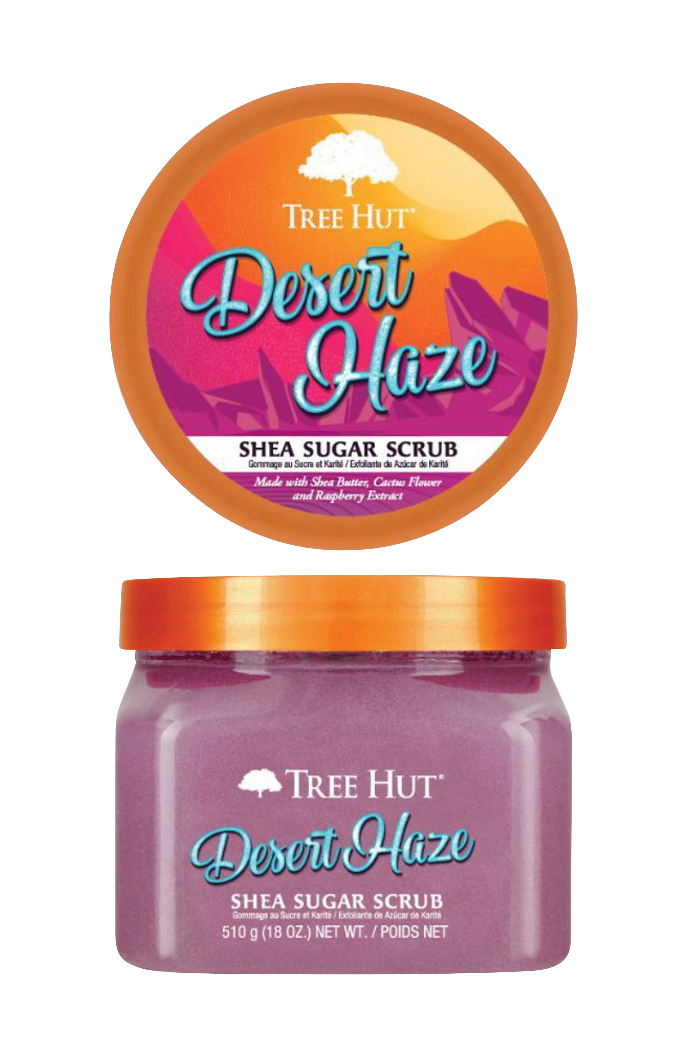 Shea Sugar Scrub Desert Haze er en blid og nærende sukkerscrub til kroppen, der giver intensiv eksfoliering til blød og skinnende hud. Sukkerkornene i skrubben eksfolierer blidt døde hudceller og efterlader huden blød og smidig. Har en frugt- og blomsterduft af hindbær, jasmin og moskus.