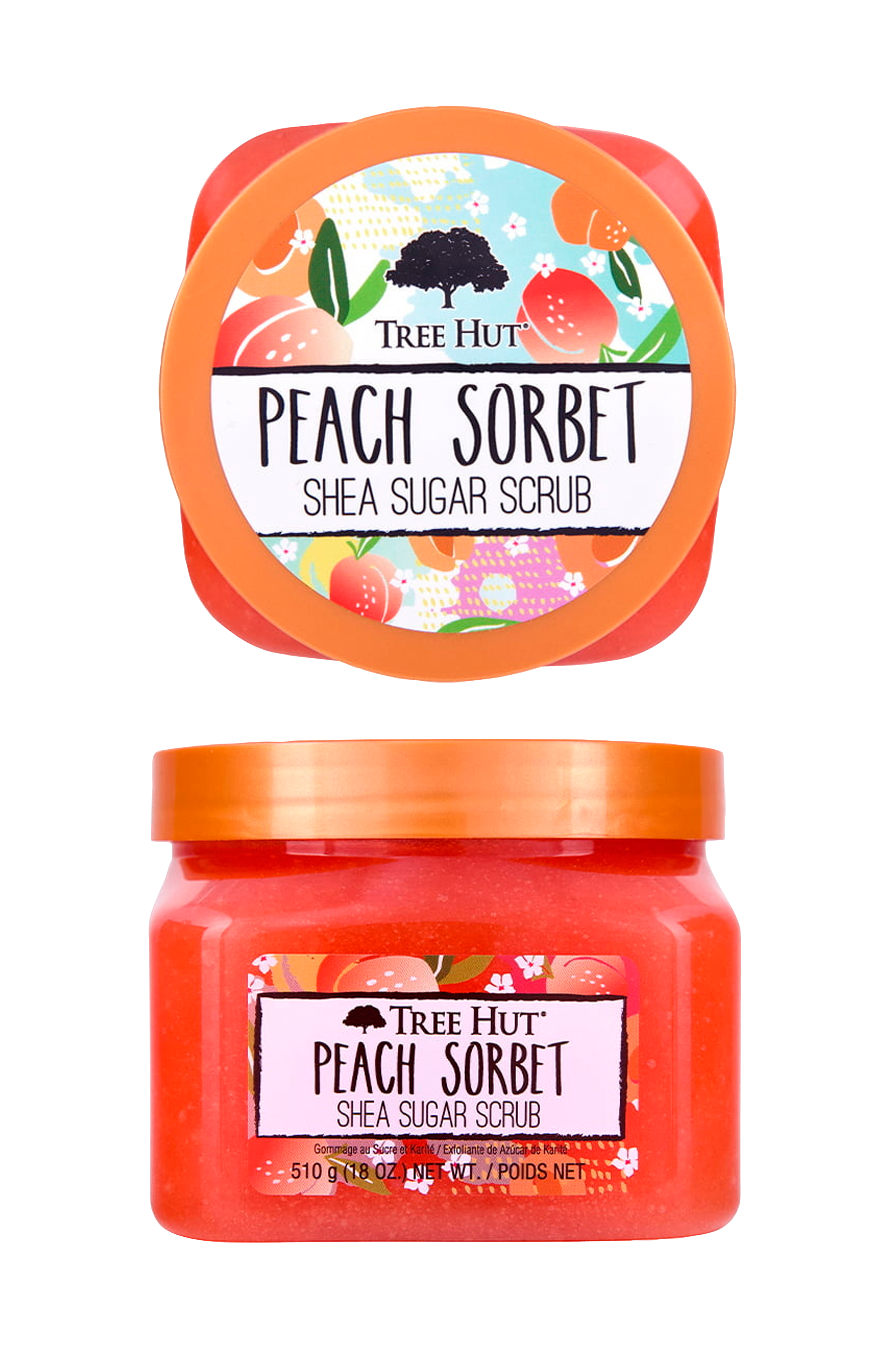 Shea Sugar Scrub Peach Sorbet er en blid og nærende sukkerscrub til kroppen, der giver intensiv eksfoliering til blød og skinnende hud. Sukkerkornene i skrubben eksfolierer blidt døde hudceller og efterlader huden blød og smidig.