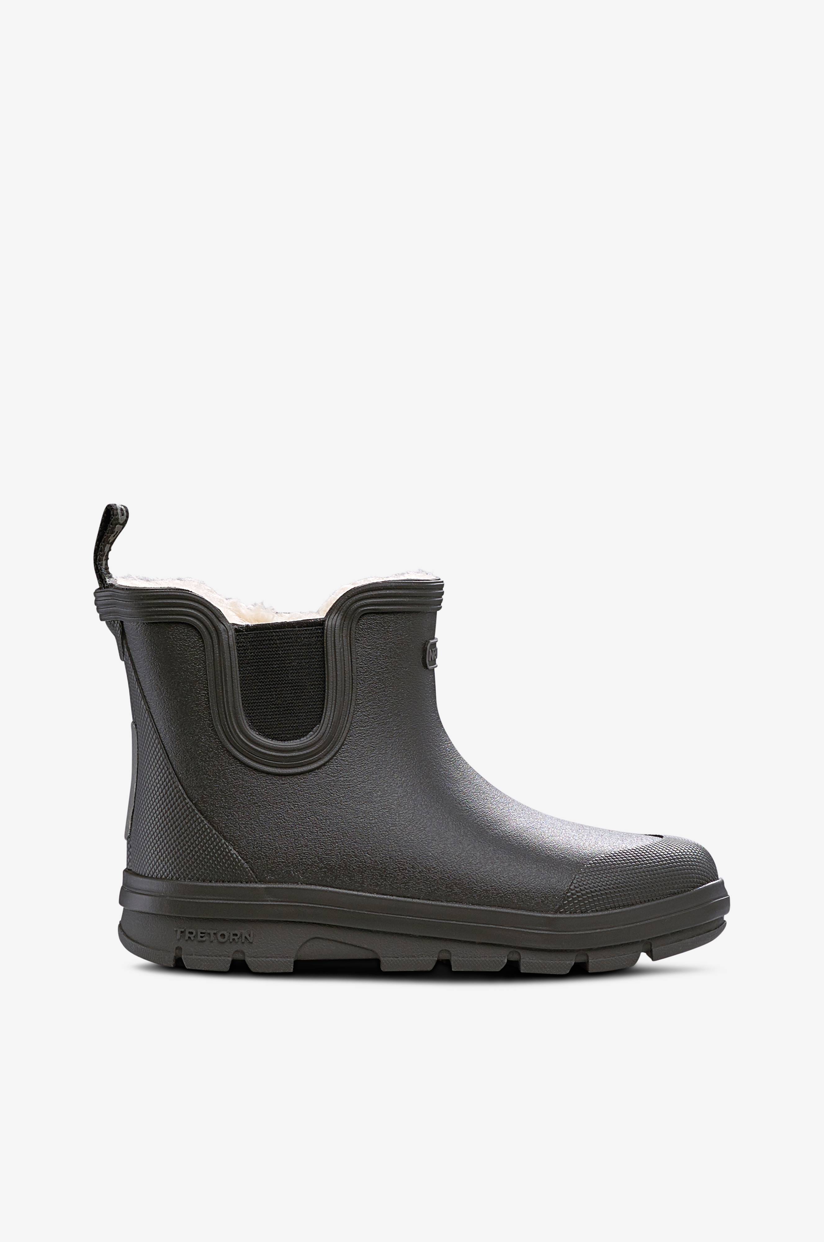 Gummistøvle Aktiv Chelsea Winter fra Tretorn er en praktisk støvle-model med varmende for af imiteret pels. Elastikker på skaftets sider har gummi bagpå for at holde vand ude, og med slids for fleksibilitet og nemmere påtagning. Strop bag på skaftet. Indersålen er udtagelig og støvlen er helforet med imiteret pels, så den også kan bruges uden indersålen. God til barnet der vokser. Refleksdetalje bag på hælen. Forstærket rundt tåen. Skridsikker sål.