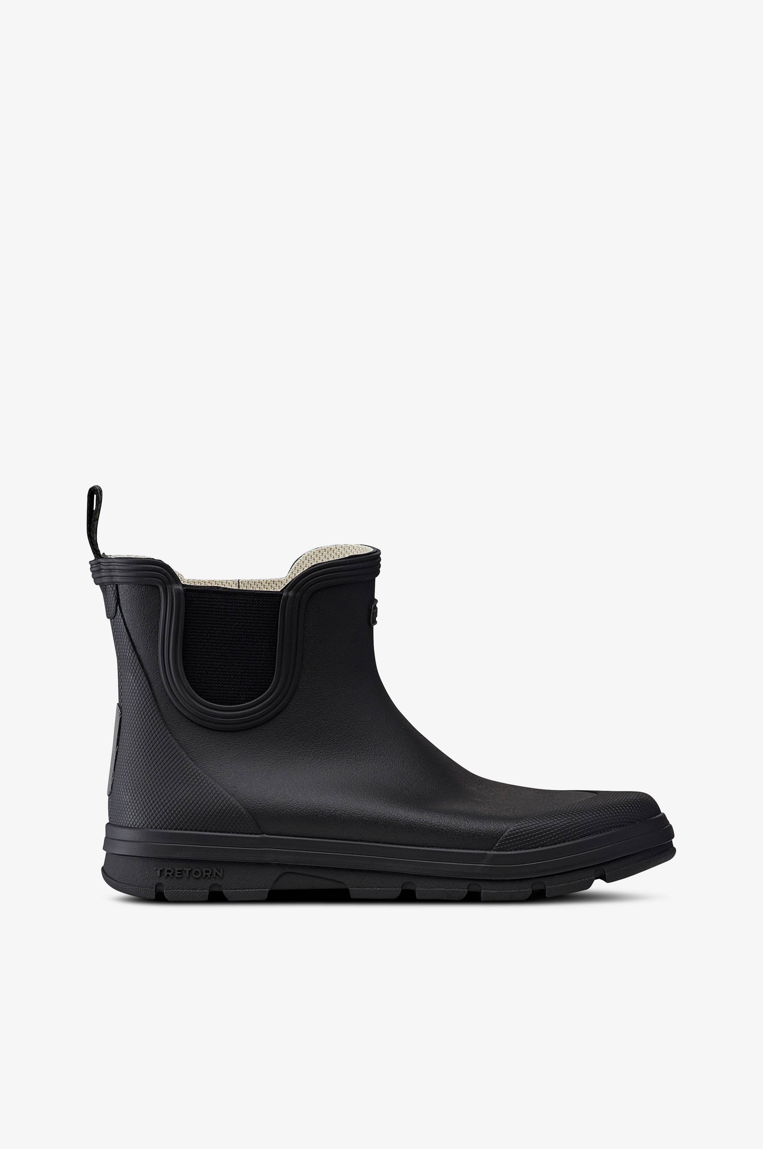 Gummistøvle Aktiv Chelsea fra Tretorn er en gummistøvle med lavt skaft, som har elastikindsats foroven på begge sider om skaftet, hvilket gør skaftvidden noget fleksibel. Gummiydersål der har gummiforstærket sålekant og godt fodfæste. Vævet træk på-strop bag på skaftet. Vandtæt. Tekstilforet. Udtagelig, polstret, stofbeklædt indersål. Refleksdetalje bag på skaftet. Skafthøjde: ca. 11 cm.