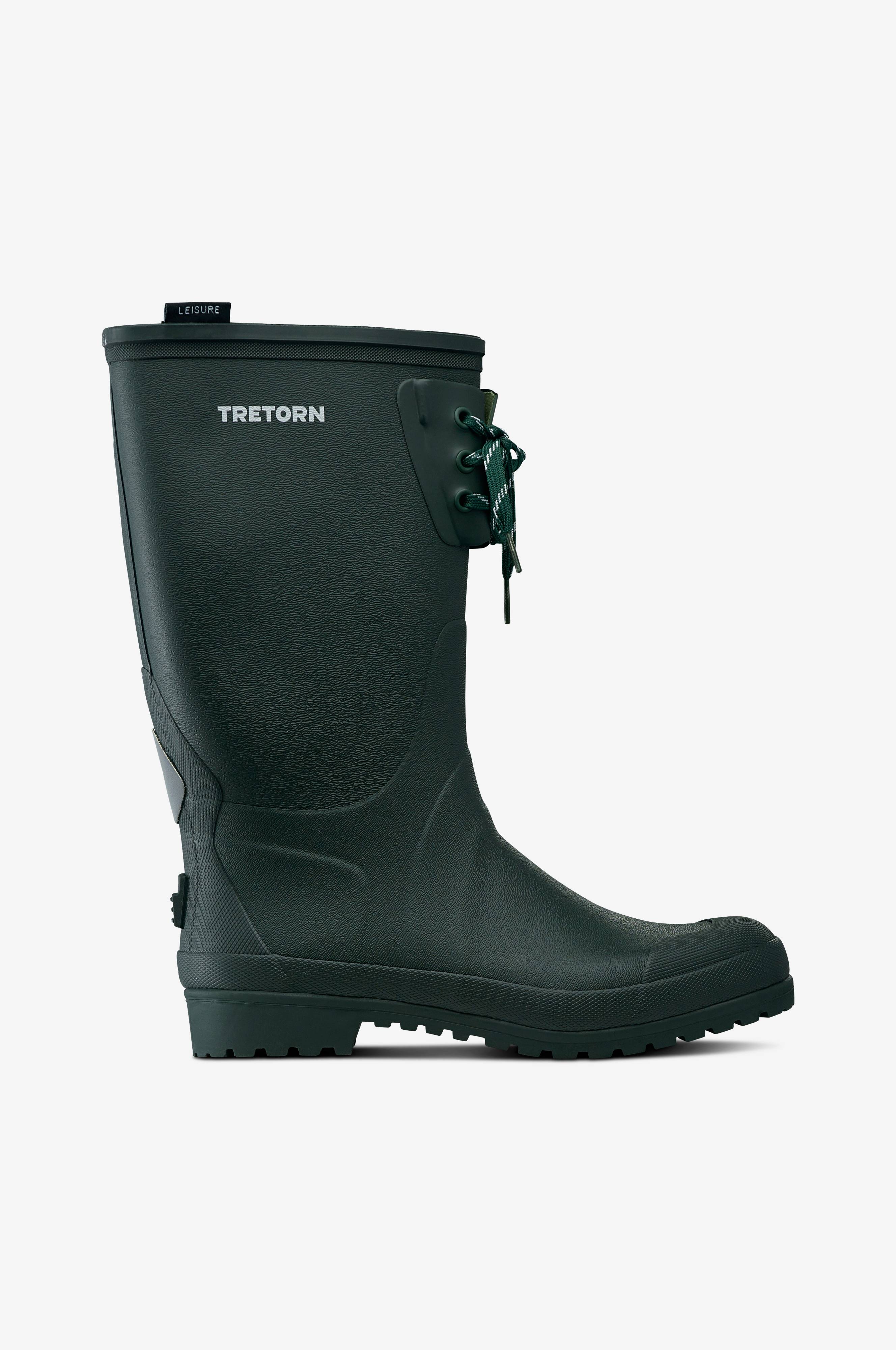 Strong S fra Tretorn er en klassisk, behagelig og vandtæt allroundstøvle i naturgummi med justerbart skaft. Meshfor med åndbarhed og fugttransporterende egenskaber. Den kraftige, opbyggede sål giver affjedring og godt fodfæste i alt slags vejr. Refleksdetalje bagpå. Skafthøjde ca. 29 cm i str. 40.