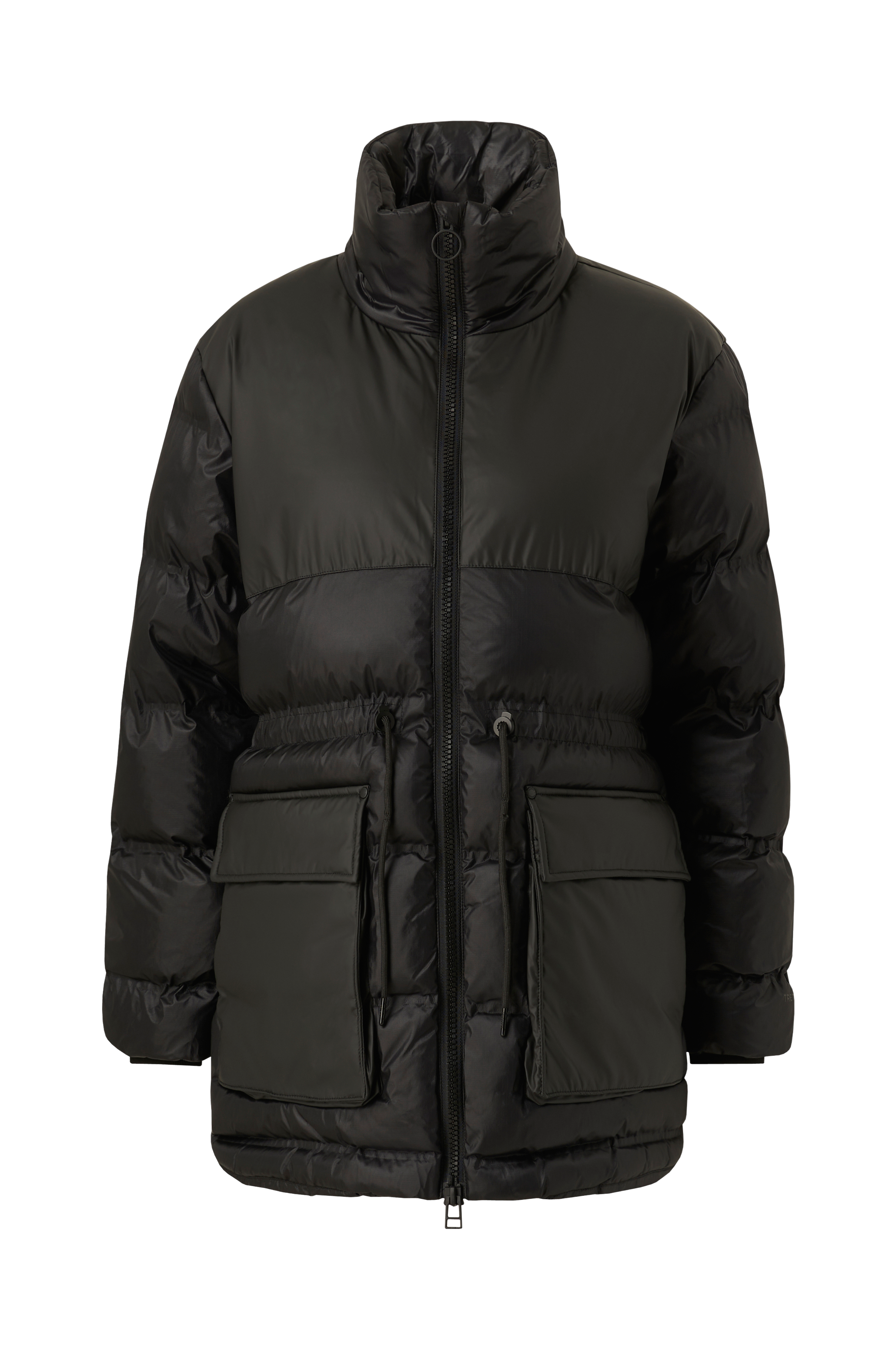 • Foret, vandtæt jakke • Vandafvisende • Åndbar • Vindtæt • Høj, foret krave • To-vejs lynlås • Træksnørre ved taljen • Ribmanchetter ved manchetterne • Sidelommer med børstet trikotfor • To lommer med knapbare låg • En inderlomme med lynlås • Længde: 78 cm i størrelse S