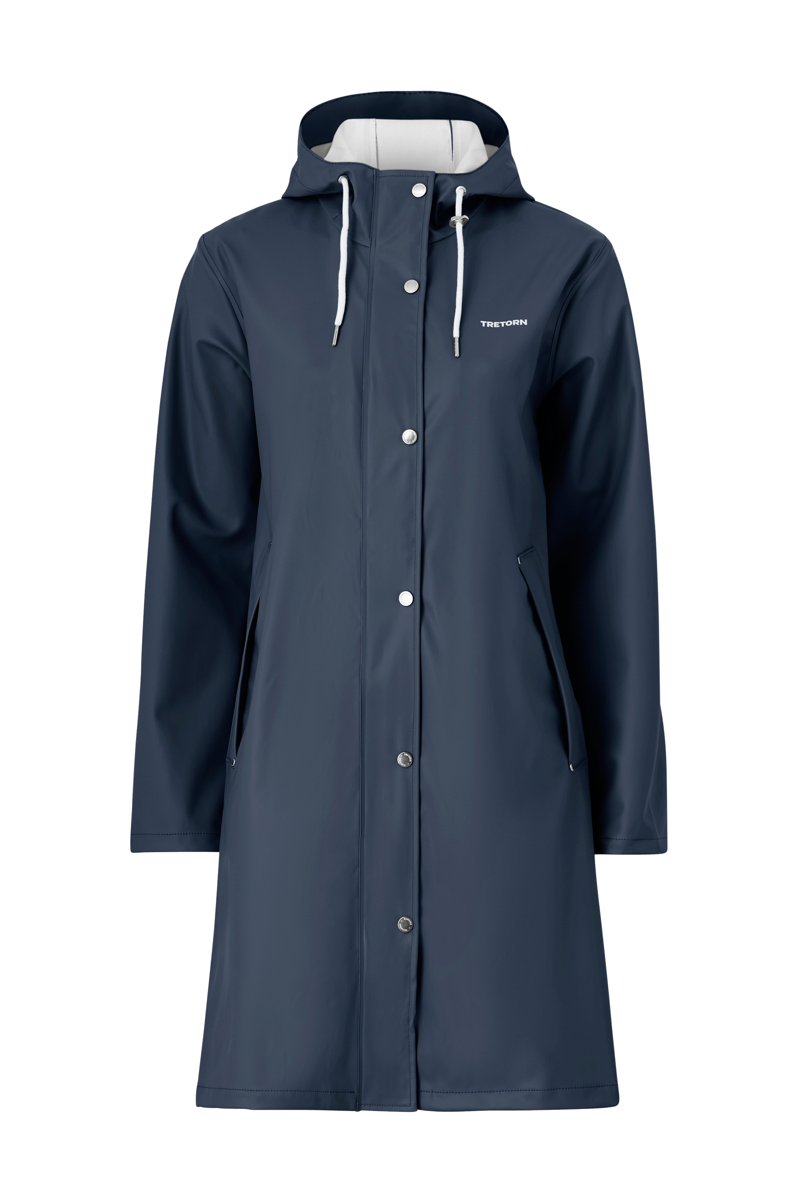 • Lige, uformel model • Knaplukning foran med trykknapper og skjult lynlås • Hætte med træksnørre • Lynlåslommer med låg • Trykknapper ved manchetterne • Længde: 95 cm i størrelse S