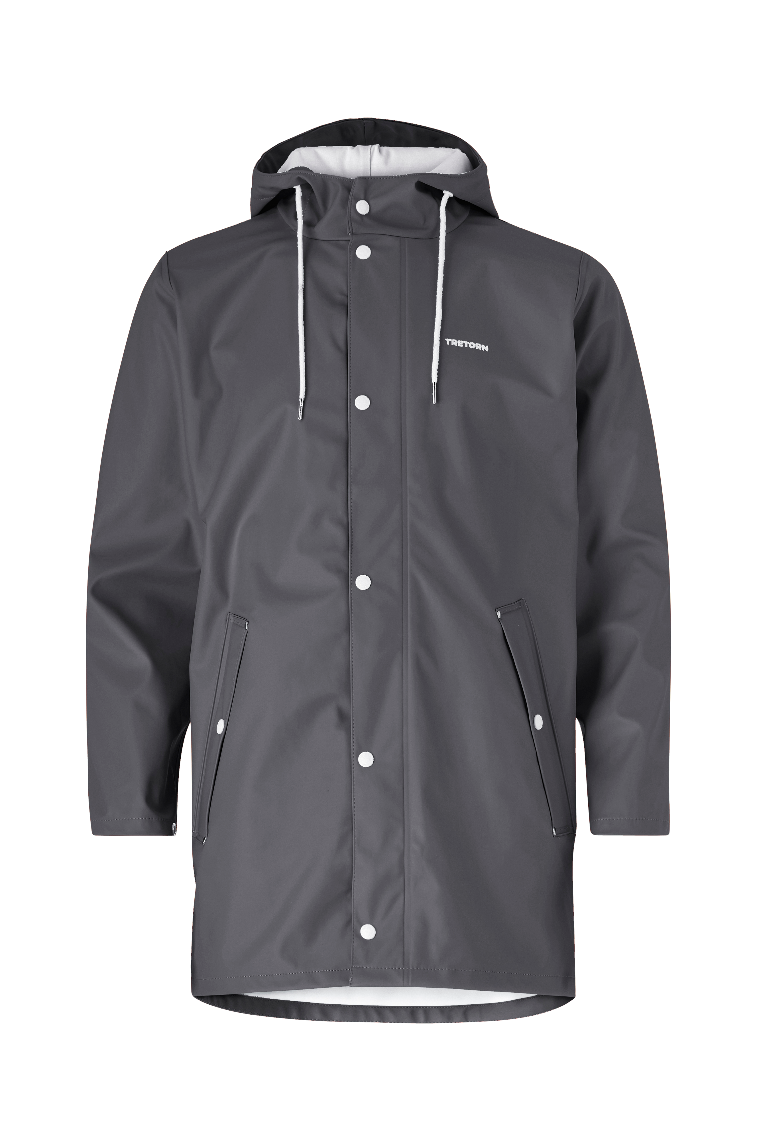 Regnjakke Wings Classic fra Tretorn er en ægte klassiker i unisexmodel. Model er lidt længere med hvide detaljer. Den faste hætte har løbegang med snøre foran. Hvide plasttrykknapper foran og i ærmekanten. To forlommer med flap, der holder vand ude. Jakken, som er helt vandtæt, er fremstillet af PVC-fri PU med varmesvejsede sømme. Længde 90 cm i str. M.