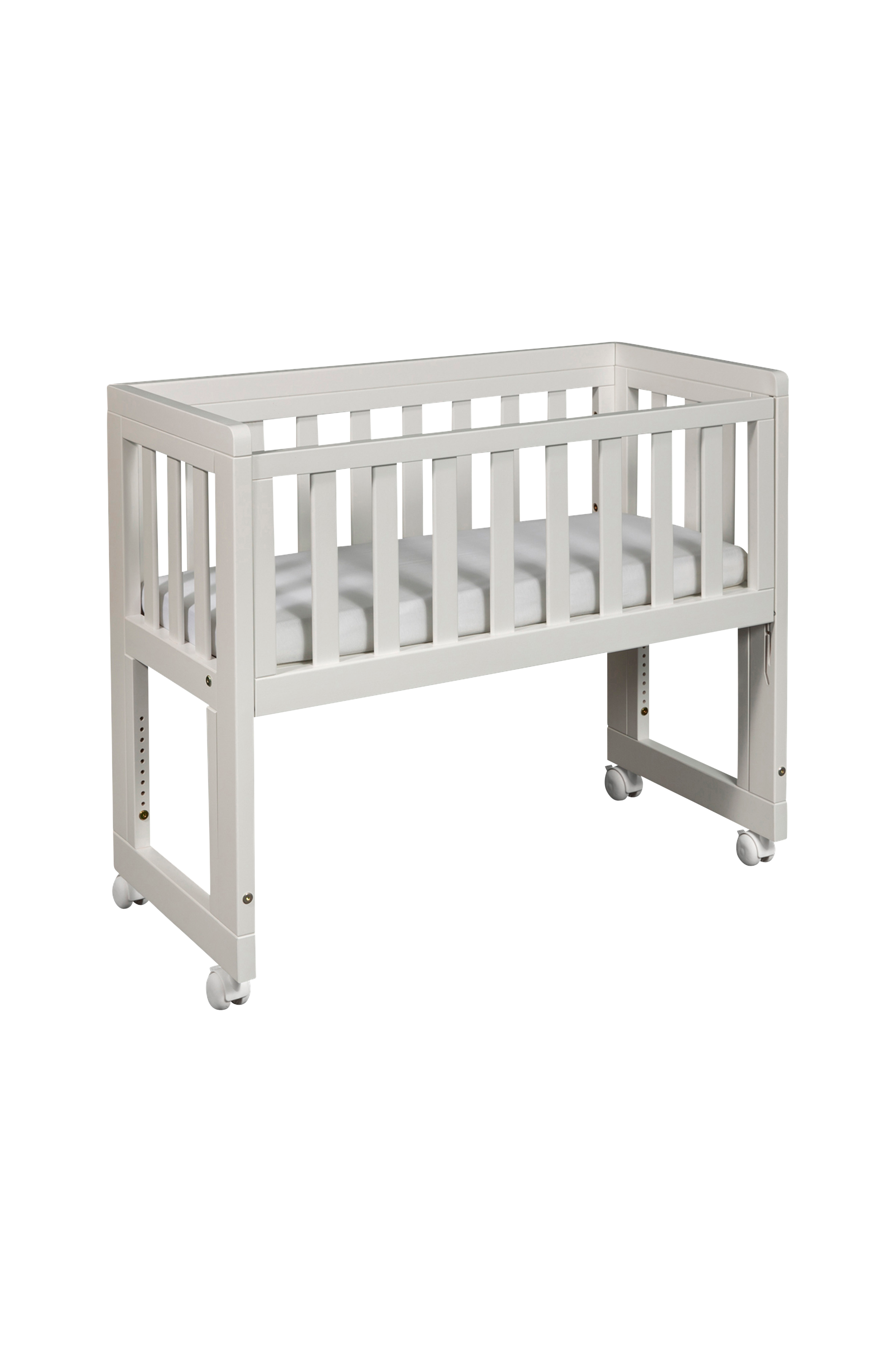En bedside crib fungerer også godt for dig, der mangler plads og leder efter en fleksibel miniseng. Takket være hjulene kan du let rulle sengen derhen, hvor du har mest brug for den, uanset om det er dag eller nat.