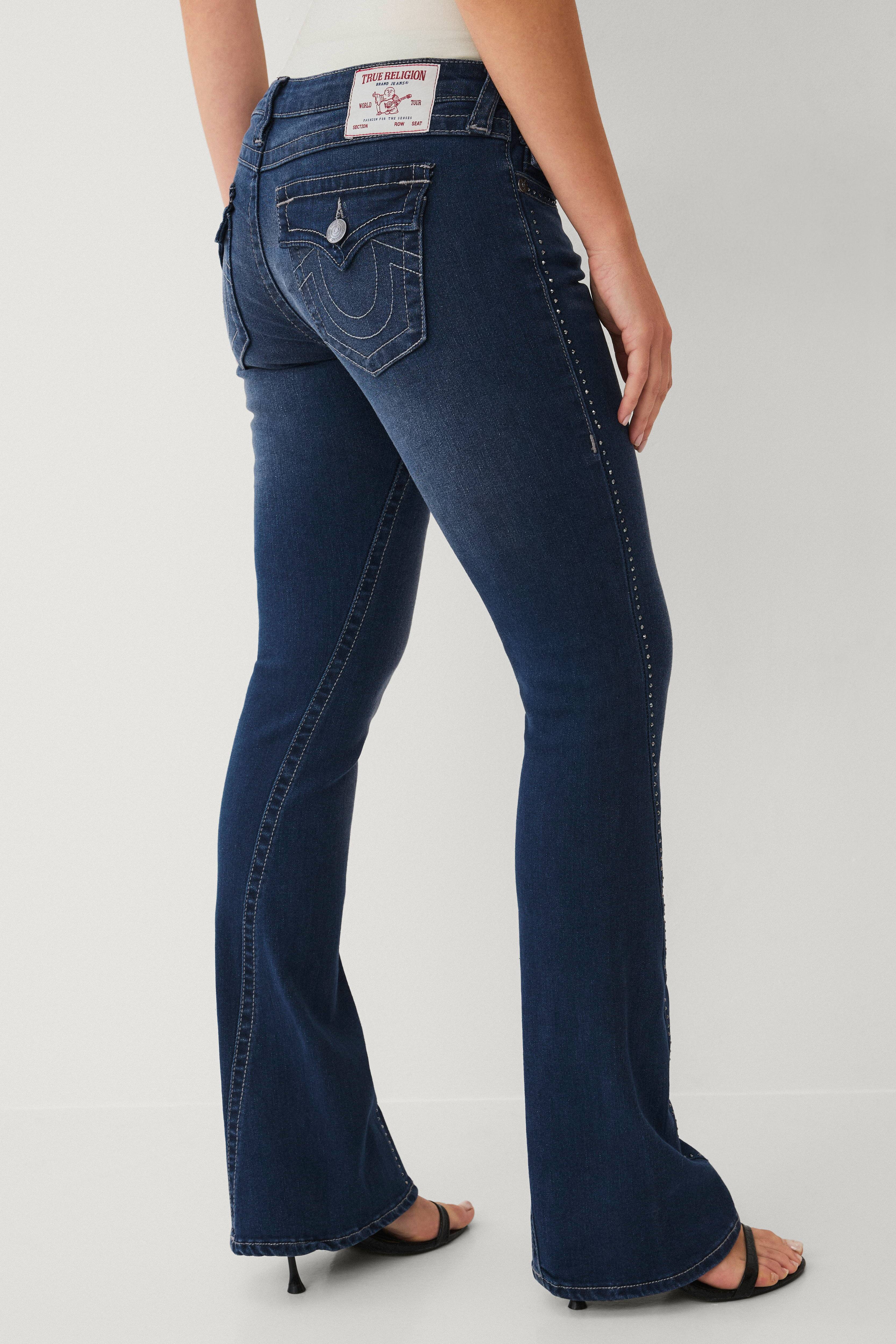 • Femlommemodel med snoede, ydre sømme• Lav talje med gylp med lynlås• Benafslutninger med svaj• Femlommemodel• Glitrende, sorte rhinstene langs hvert ben og på forlommerne• Indre benlængde: 82 cm i størrelse 27
