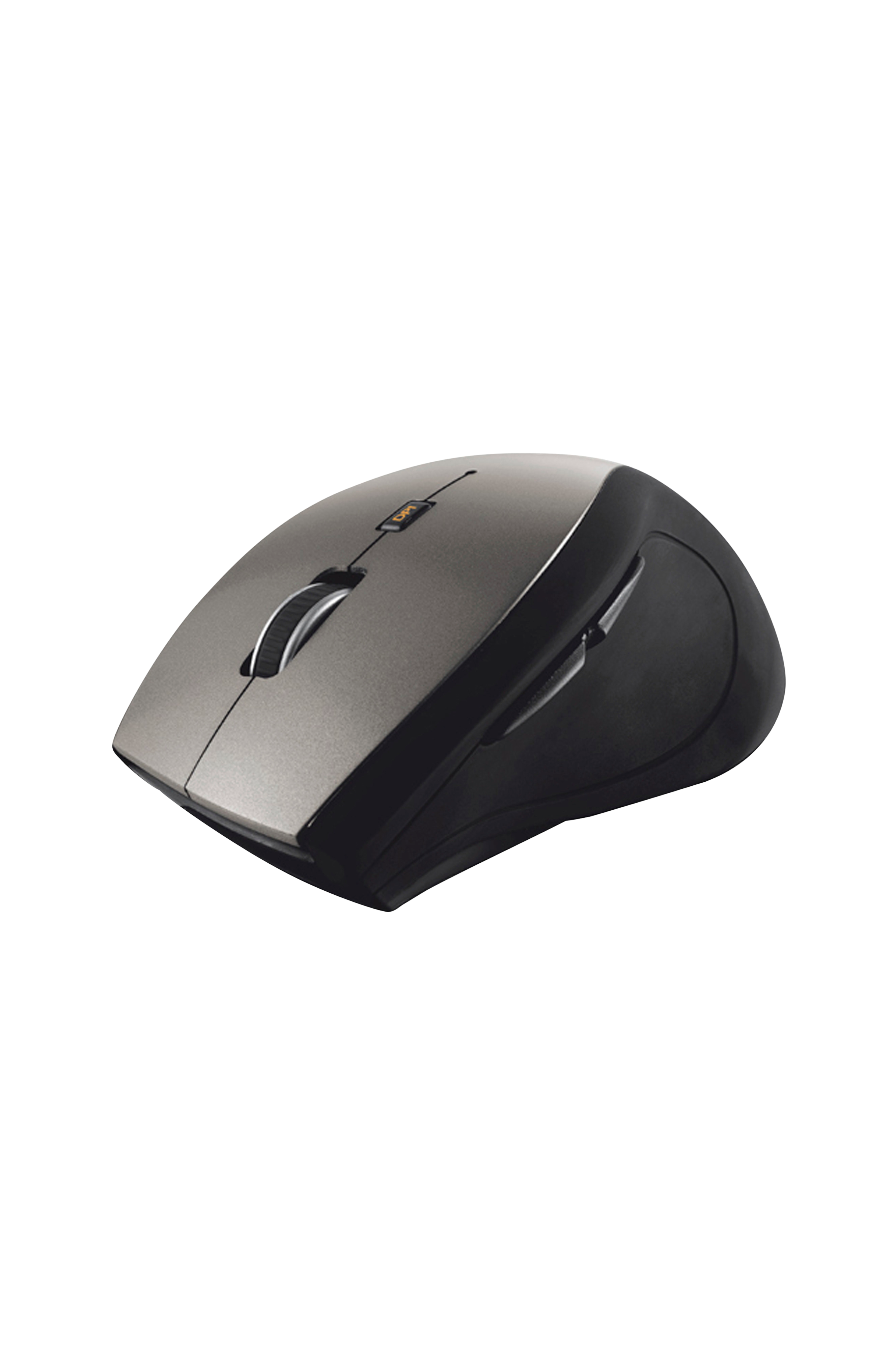 Trådløs optisk mus med ergonomisk design og Micro USB-modtager der kan gemmes væk.