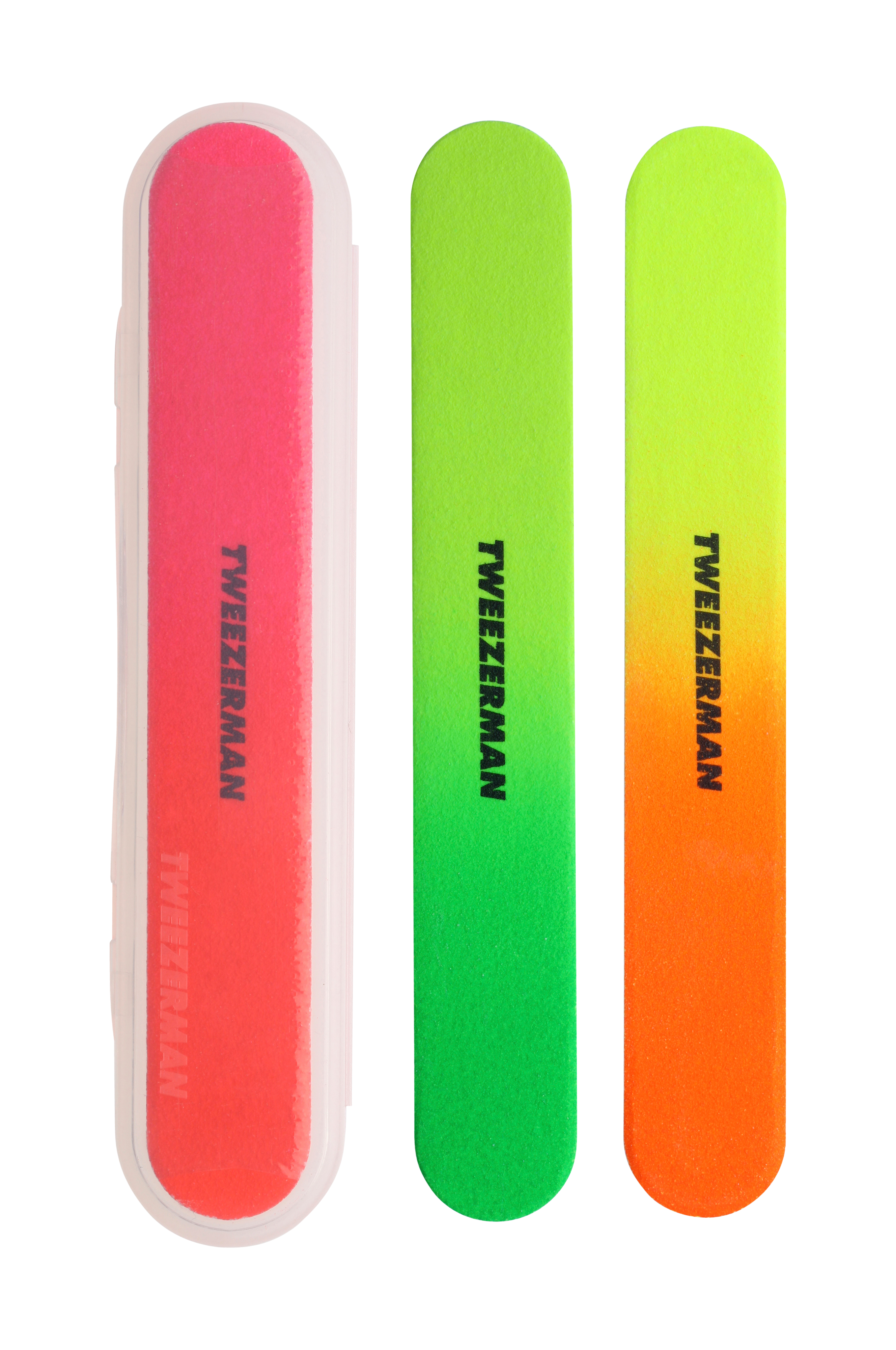 Tre hotte neonneglefile i en pakke. Praktisk etui medfølger for at holde filene rene og beskyddede. Perfekt til håndtasken og rejsen.