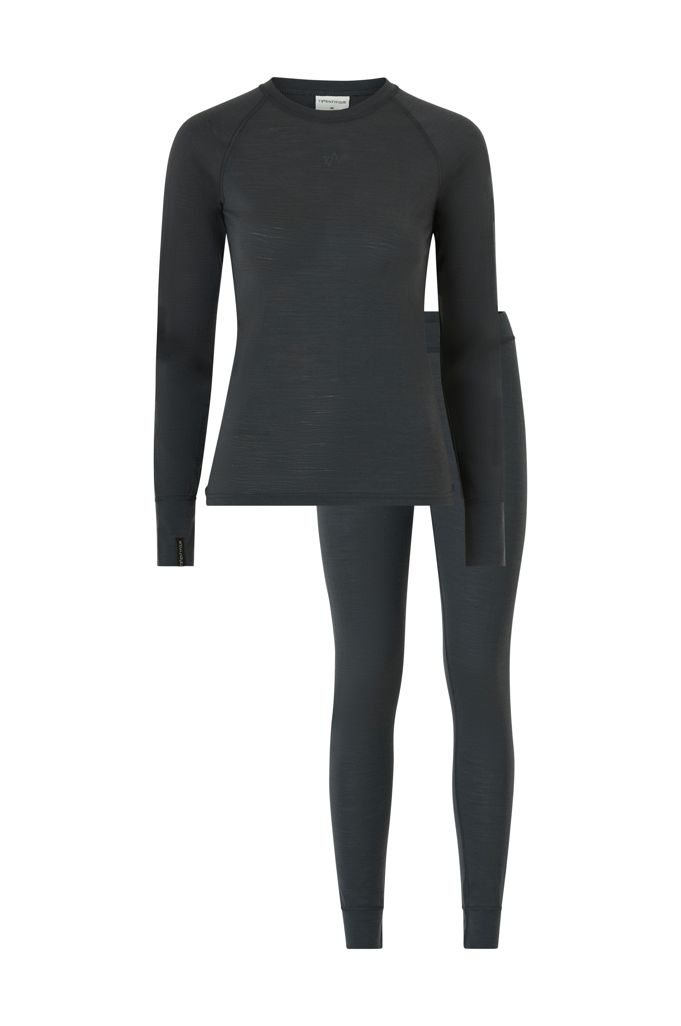 2-delt basislag i blød, ikke-kløende merinouldblanding. Uld/polyester-blandingen giver et let og blødt materiale med høj komfort, elasticitet og øget holdbarhed. Tøjet ånder godt, tørrer hurtigt og har flatlock-sømme, som gør det meget behageligt at have på. Langærmet trøje med ekstra længde bagpå. Bukser med elastik i taljen og ved håndleddene.