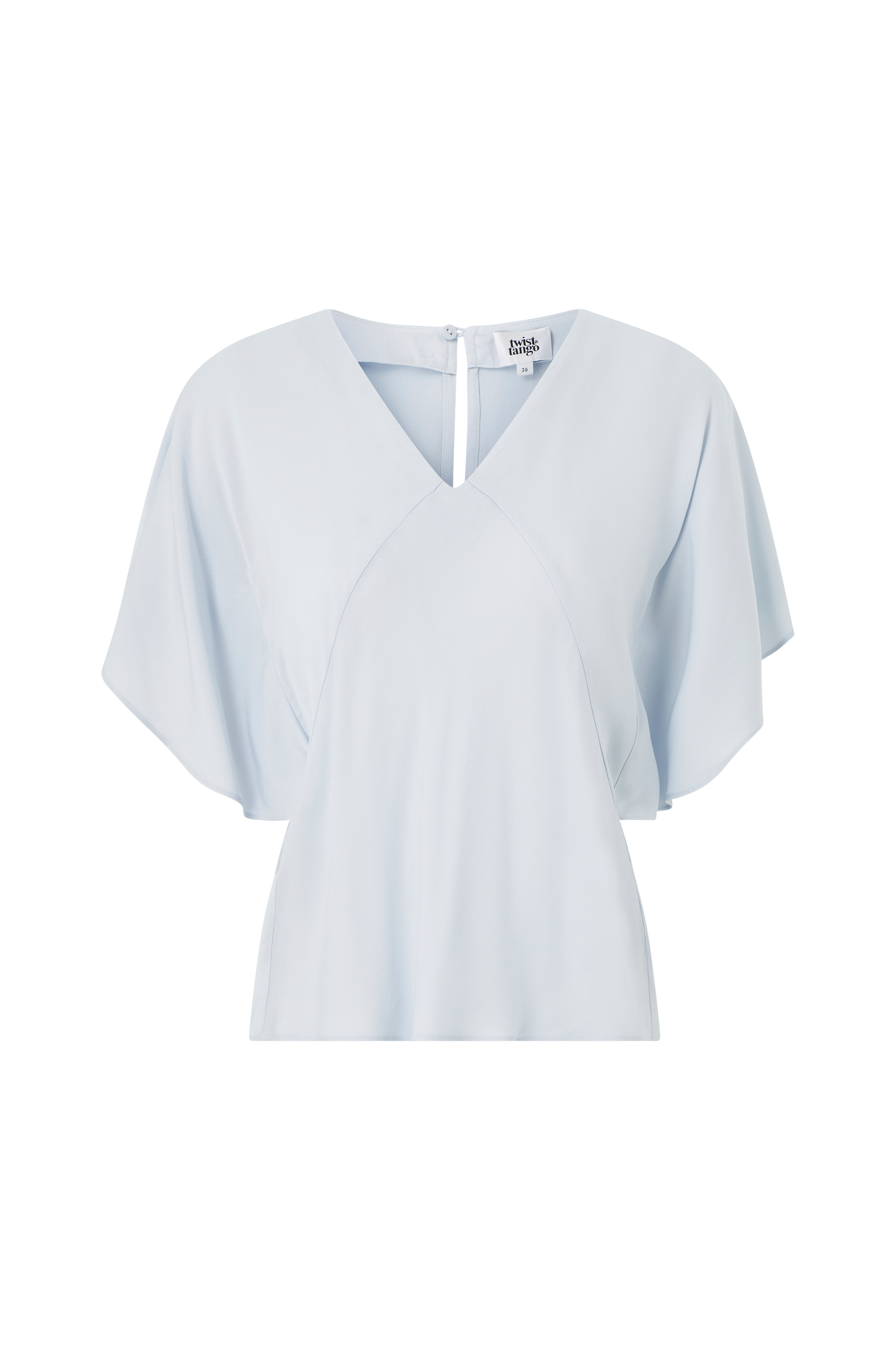 • V-formet halsudskæring med knap i nakken