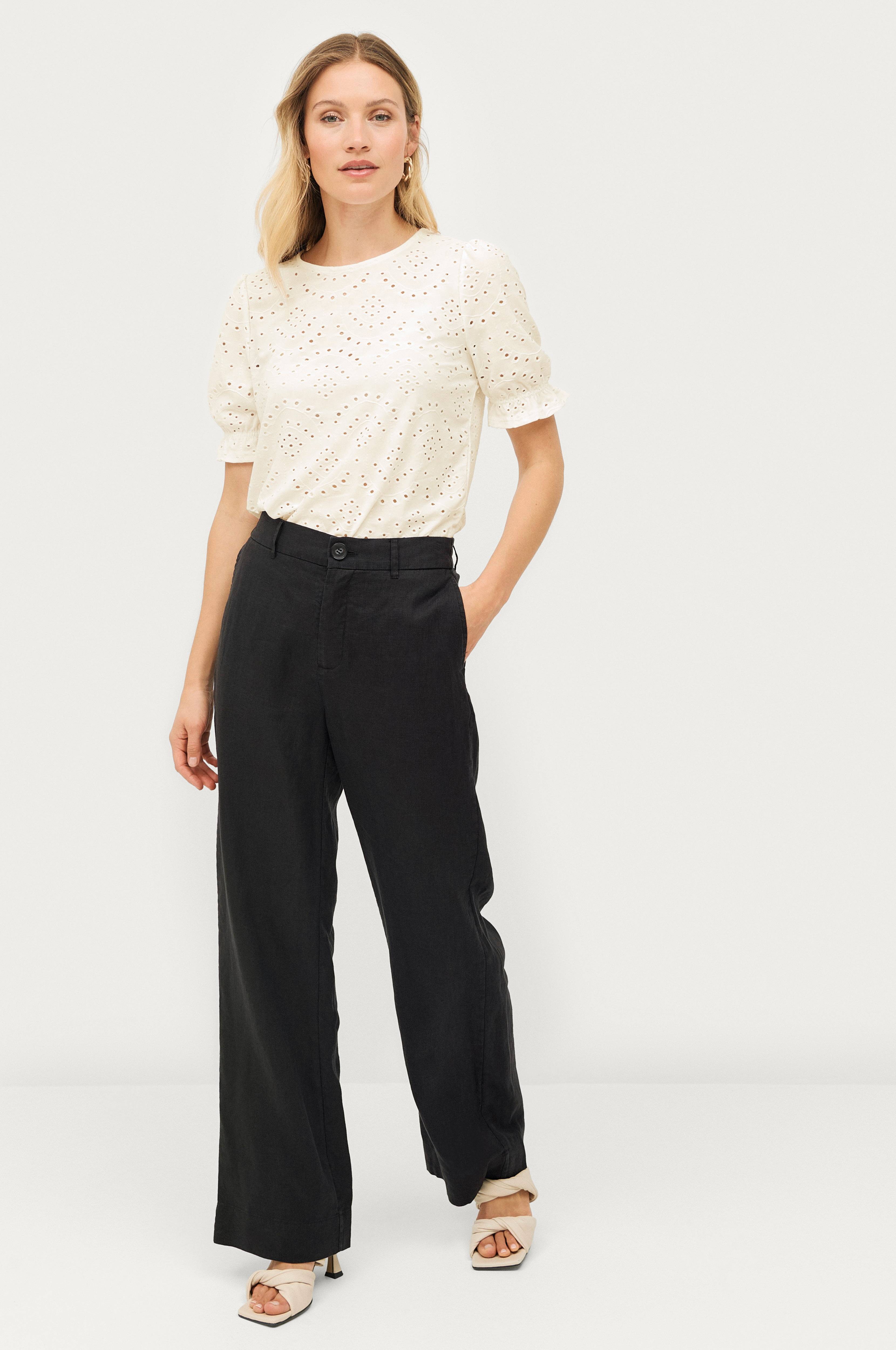 • Bukser i linnedkvalitet• Elastik bagpå ved taljen• Stropper• Knaplukning• Gylp med lynlås• Sidelommer