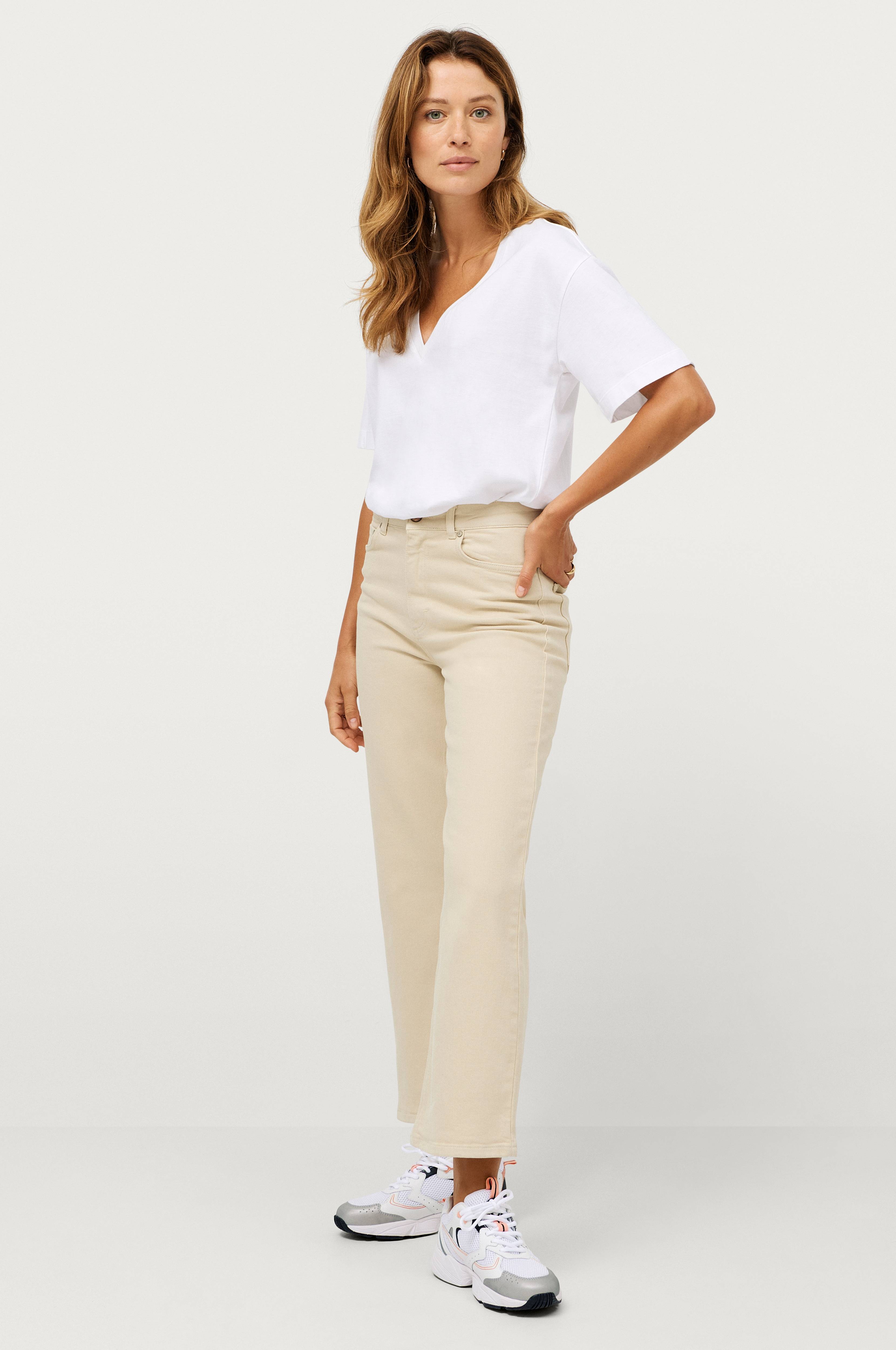 • Ankellængde • Skinny fit • Lige ben • Høj talje • Femlommemodel • Strækdenim • Gylp med lynlås • Produktet indeholder økologisk bomuld, som er dyrket uden kemiske sprøjtemidler, kunstgødning og genmodificerede afgrøder (GMO). Dette betyder et sundere arbejdsmiljø for landmænd og bedre jord.
