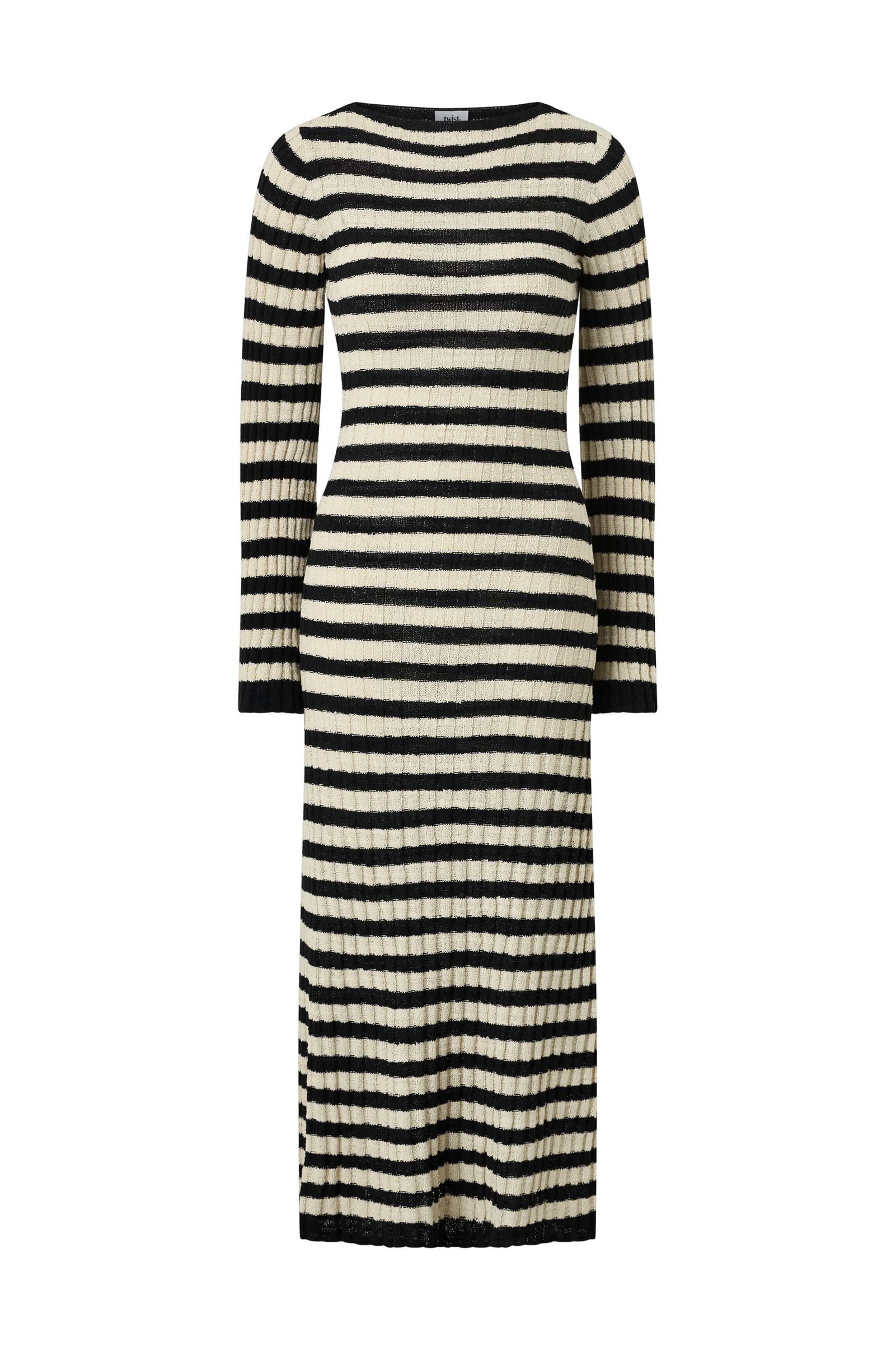 • Lang strikkjole• Rund halsudskæring• Lange trompetærmer• Længde: 136 cm i størrelse S