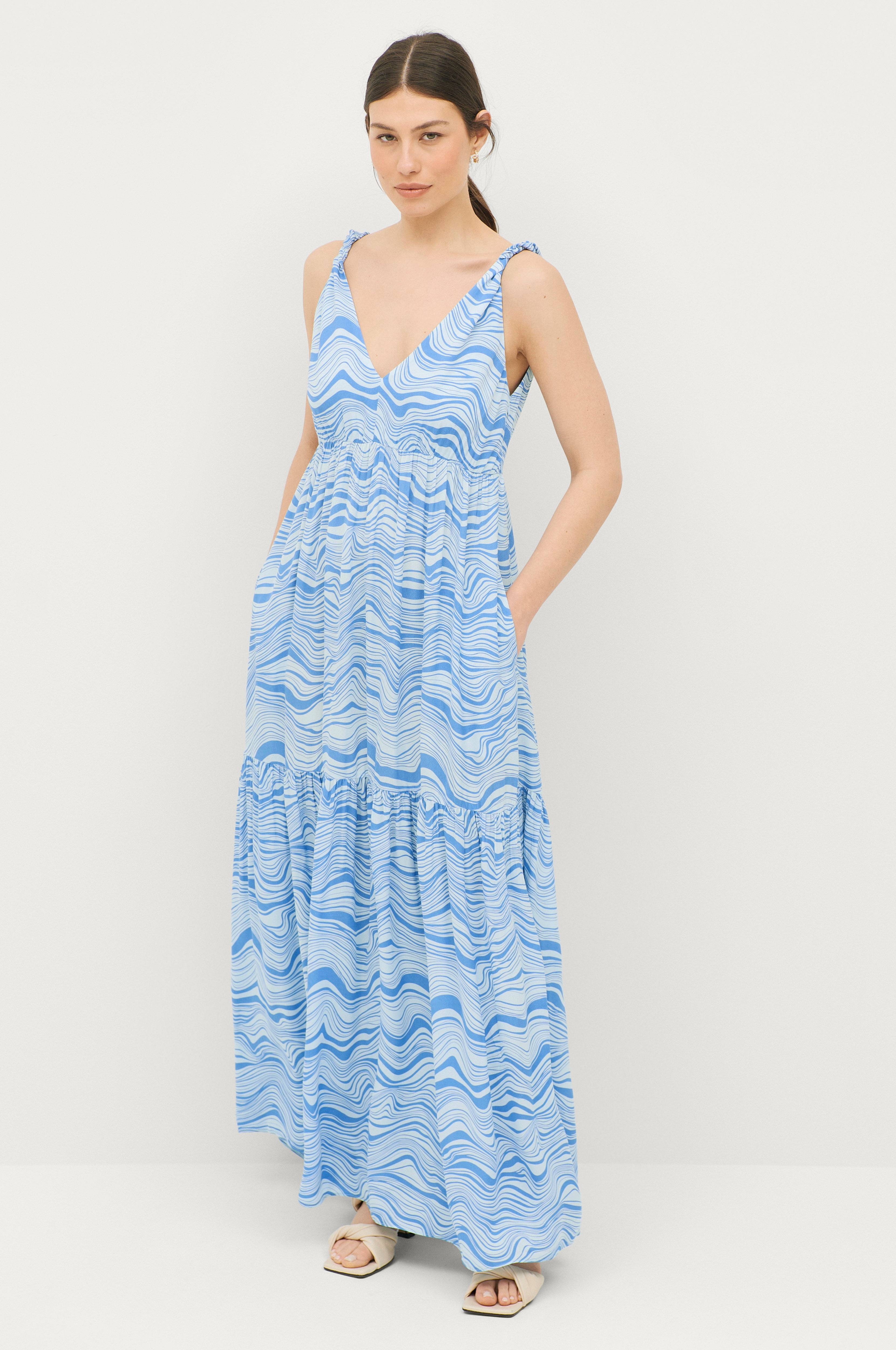 • V-udskæring foran og bagpå• Skjult lynlås i siden• Tynd, vævet kvalitet• Længde: 143 cm i størrelse 36