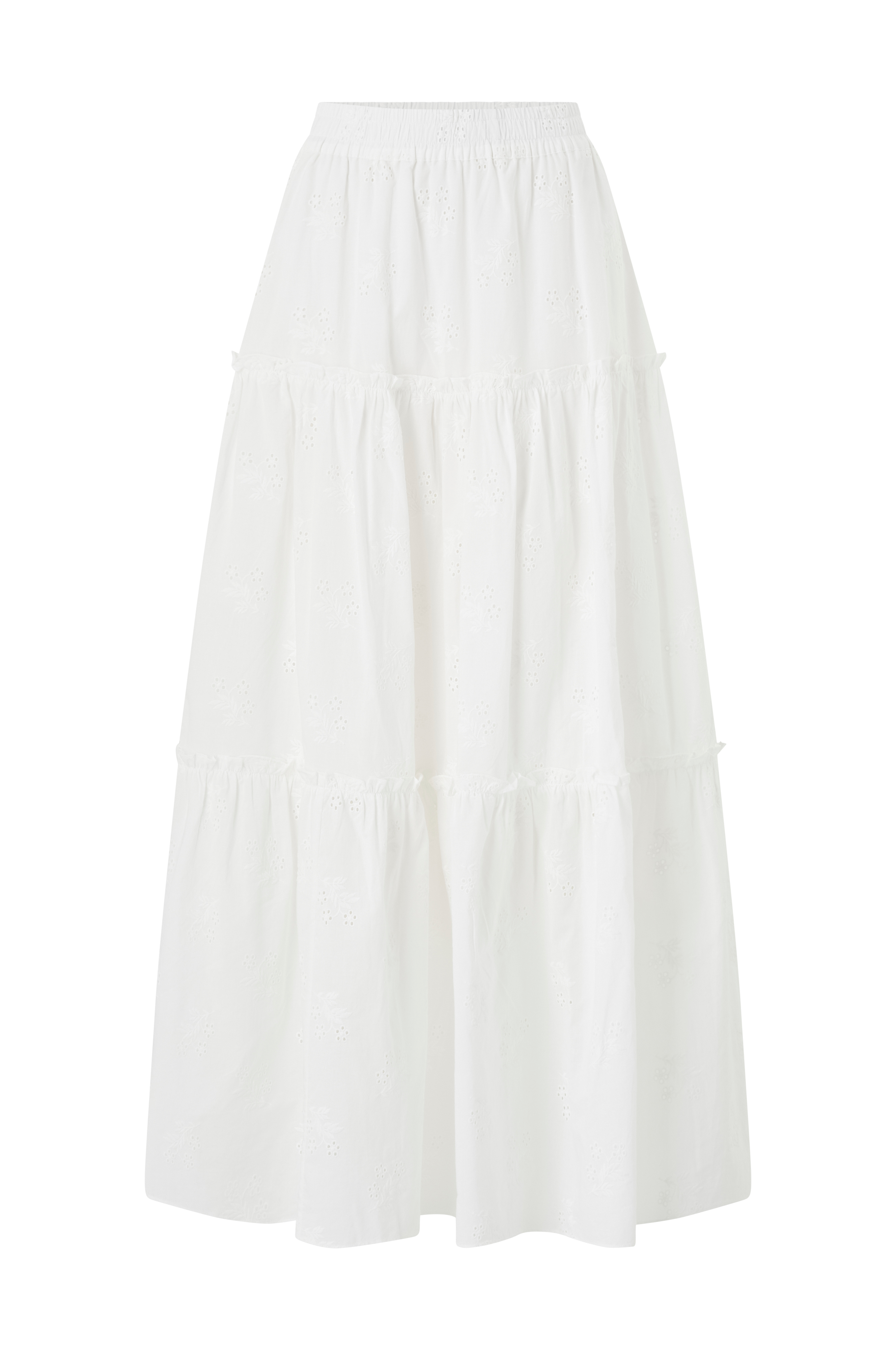 • Bred model med svaj med hulbroderier• Bred elastik på toppen• Foret• Længde: 104 cm i størrelse S