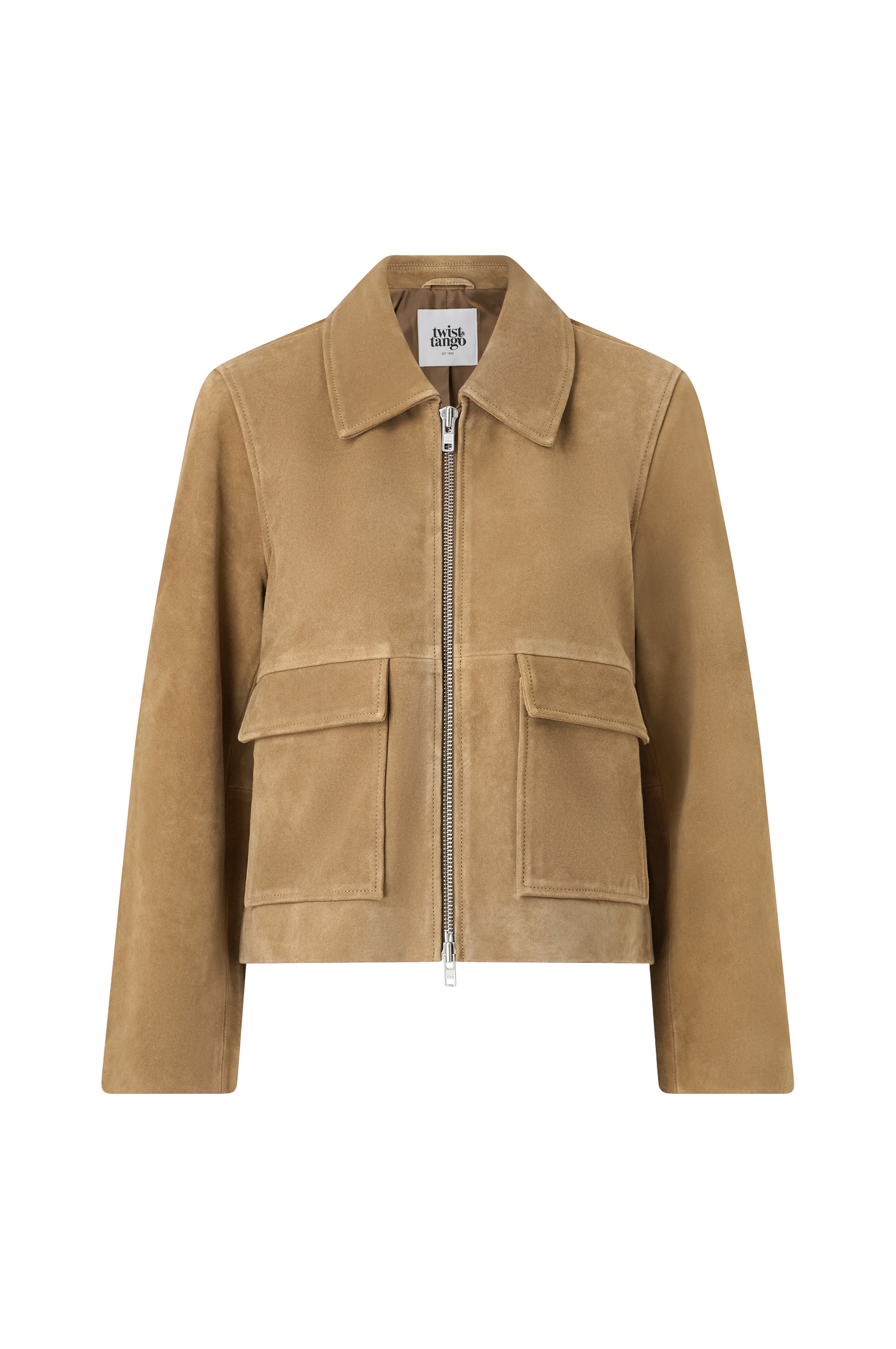 • Ruskindsjakke med krave