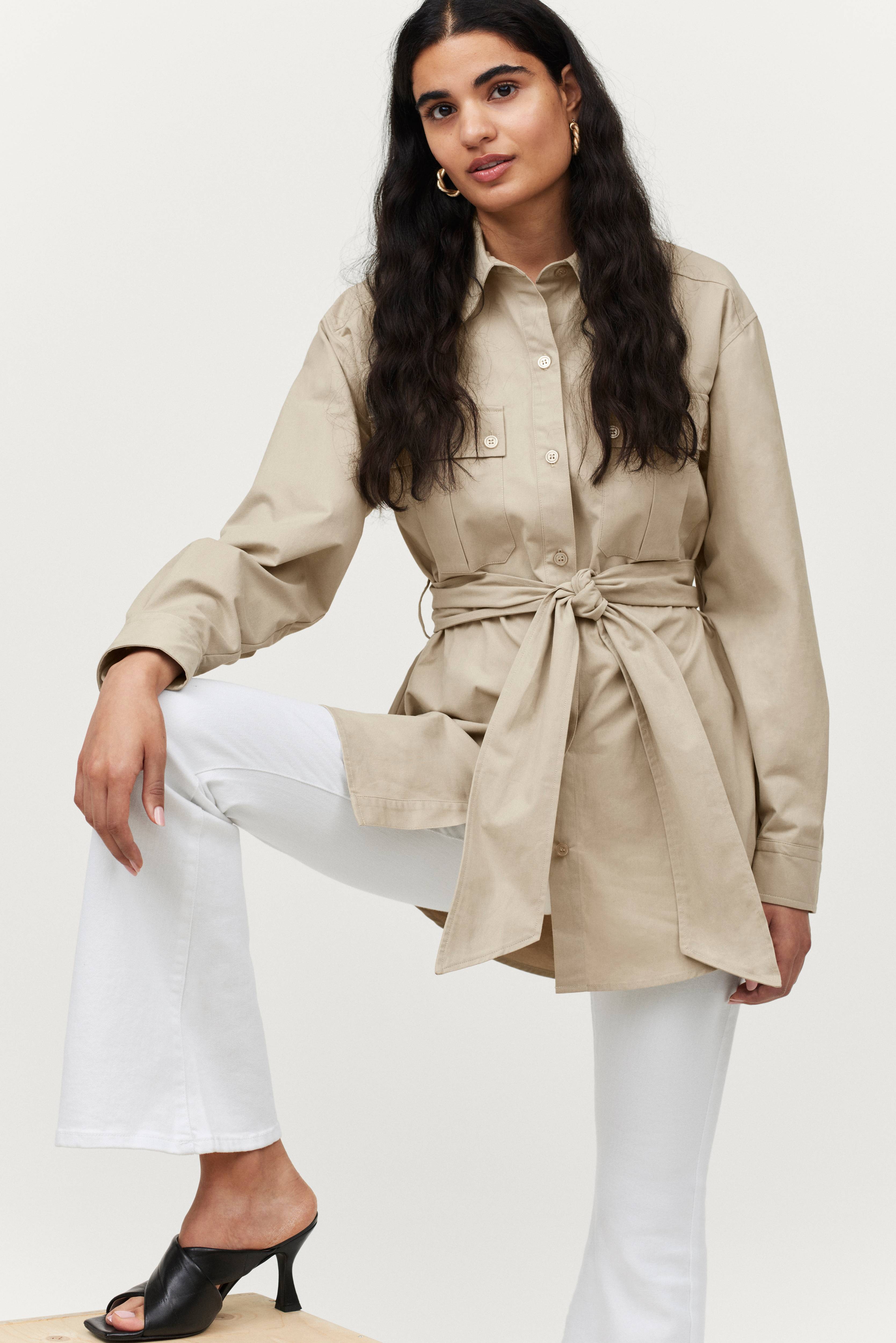 • Knapper foran• To brystlommer• Langt ærme med manchet• Bæltespænde ved taljen• Vævet kvalitet med blød overflade• Uformel model