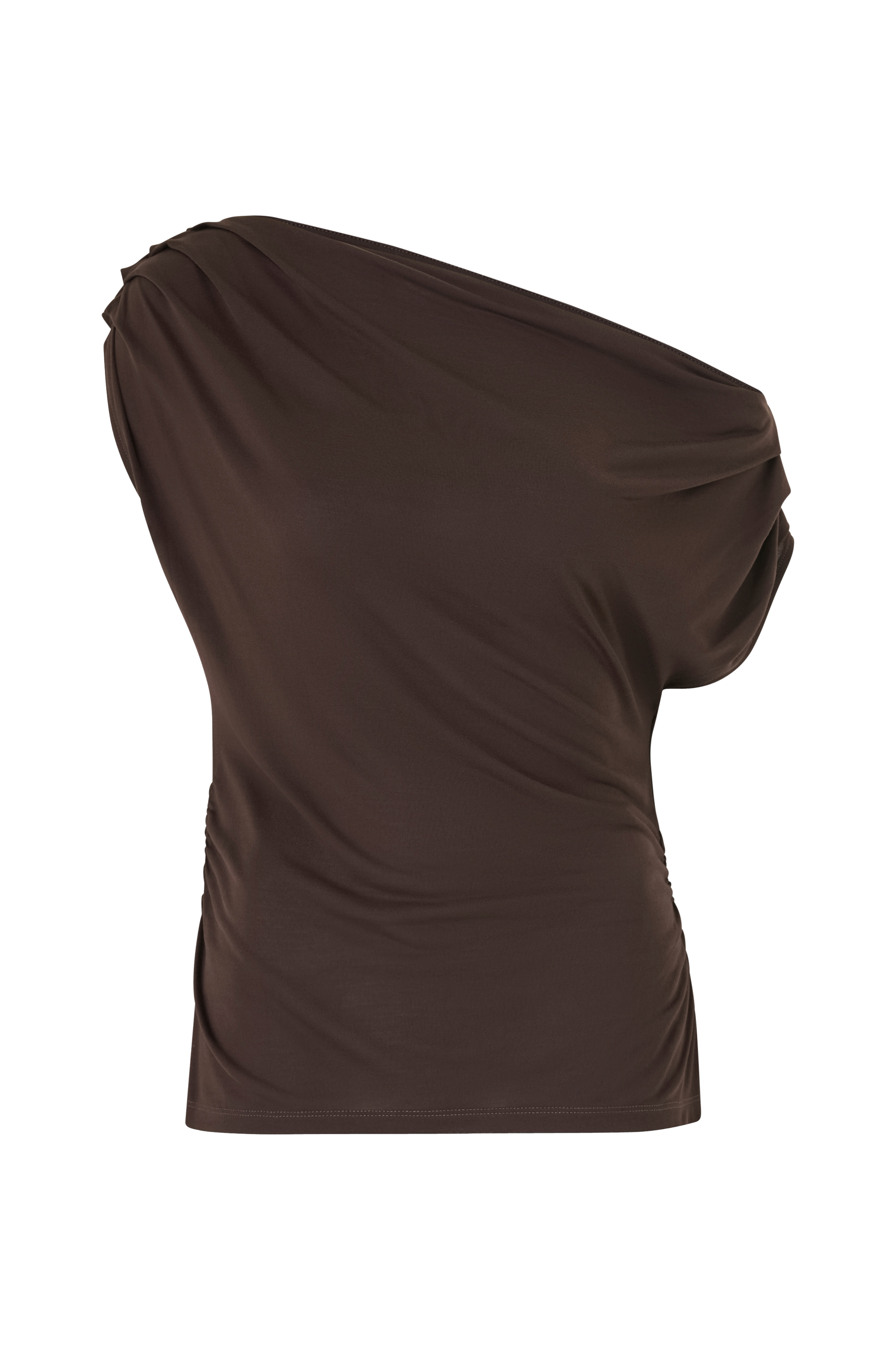 • Elastisk, ærmeløs top• Rund, bred halsudskæring• Samling på skuldrene• Drapering ved taljen