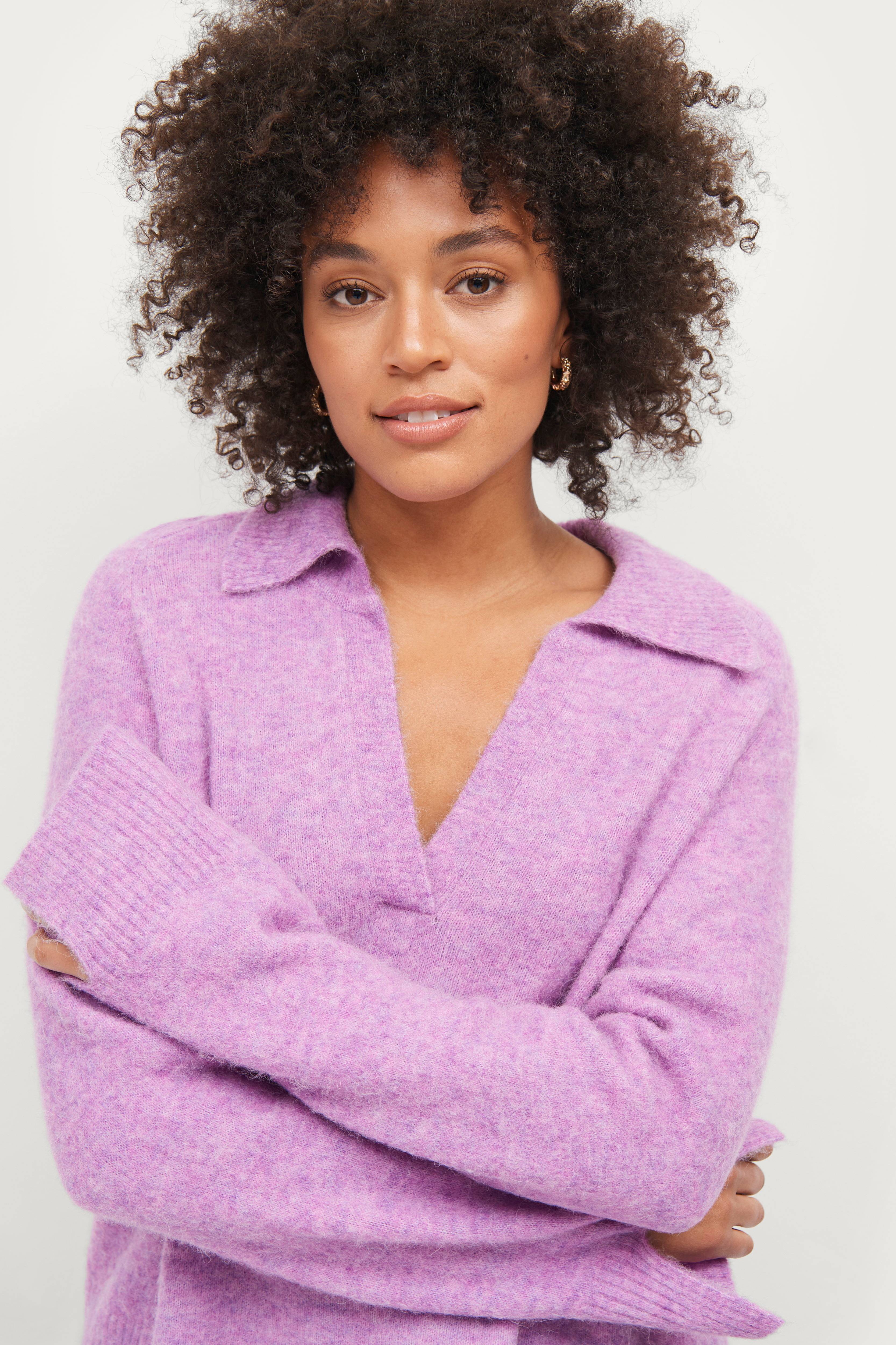 • Trøje i alpakablanding• V-udskæring• Ribstrikket krave• Blød kvalitet
